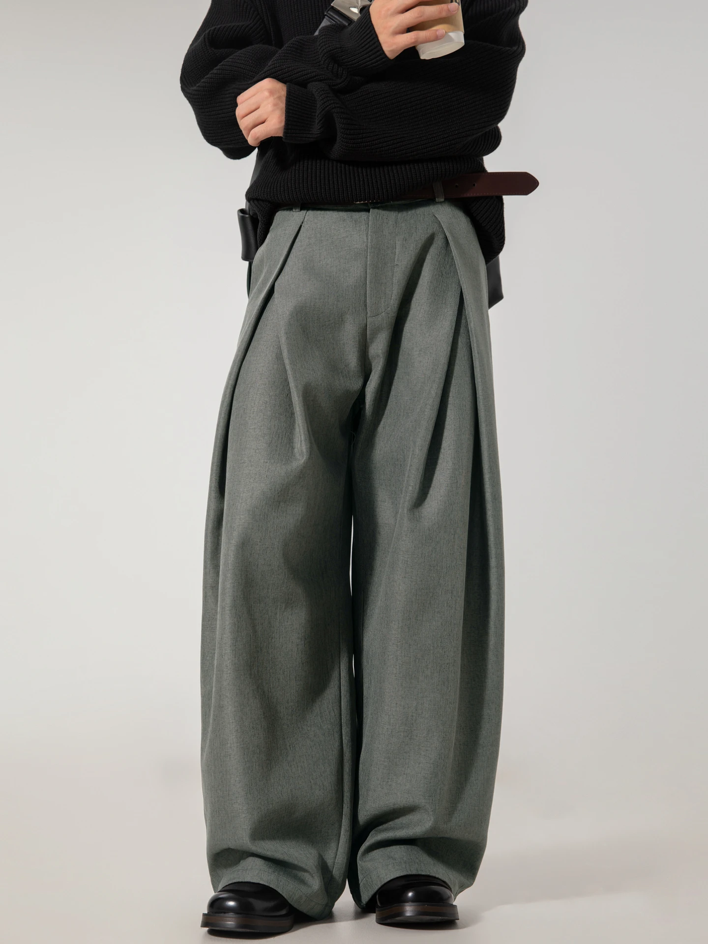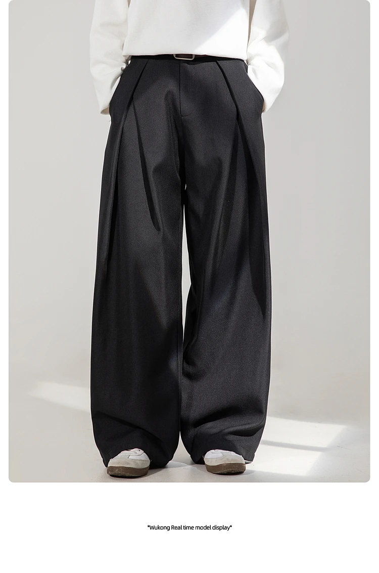 Pantalon pour hommes Baggy pantalons décontractés automne nouveau plissé Double ceinture Niche Design tendance coréen jambe droite pantalon 2025