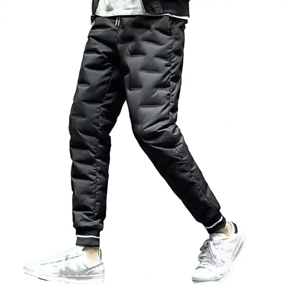 Pantalon en duvet pour hommes, ceinture réglable, épais, chaud, pour l'automne et l'hiver, taille élastique, cordon de serrage, coupe-vent, coton de neige