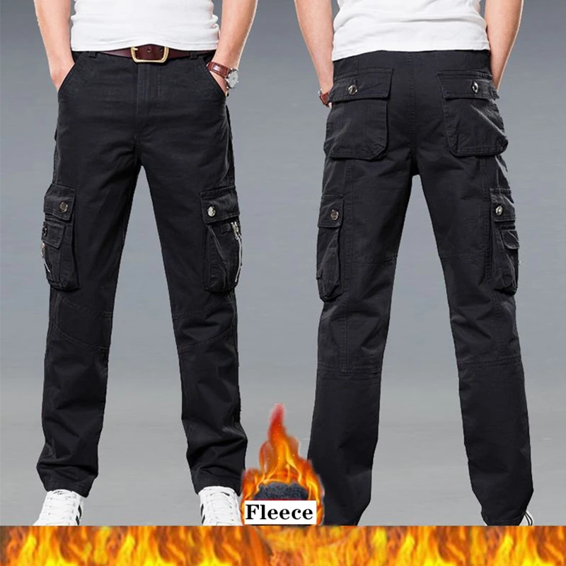 Pantalon tactique chaud en polaire d'hiver, pantalon en coton à fermeture éclair, ample, vert armée, Cargo, décontracté, Plus épais, pantalon d'outillage, taille 40