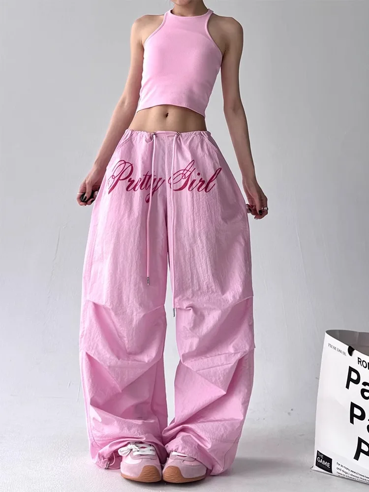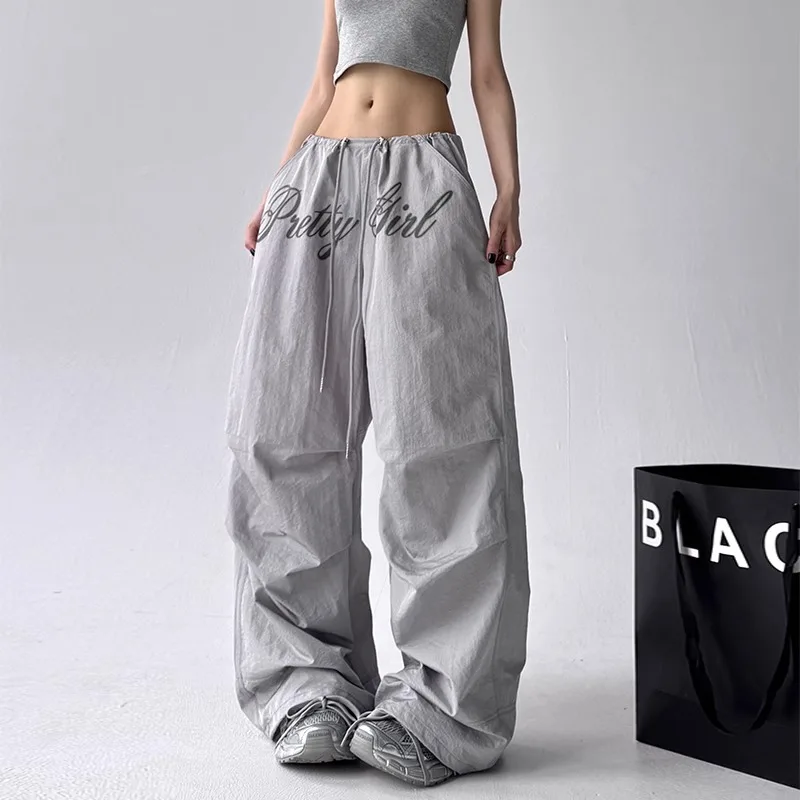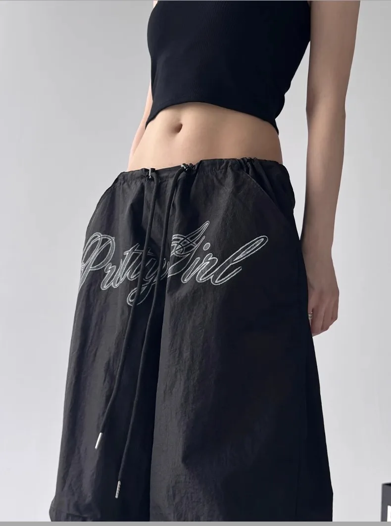 Pantalones Casuales pantalons décontractés brodés pour femmes pantalons droits amples et confortables à taille élastique pantalons de parachutiste