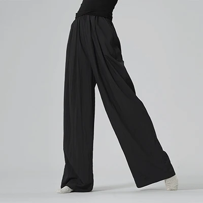 Pantalons de danse amples pour femmes, pantalons de danse moderne pour adultes, noir, pli naturel, pantalons de pratique de danse classique