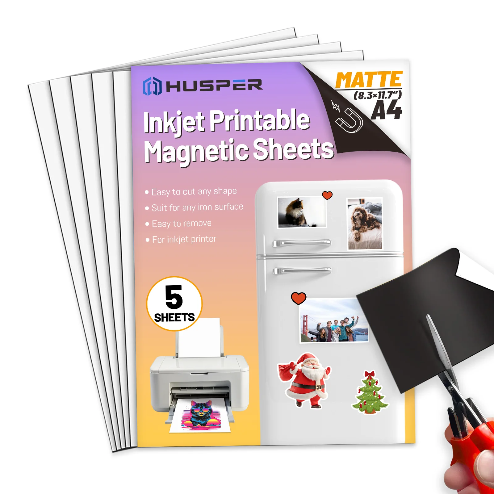Papier Photo magnétique A4, finition mate, Flexible, imprimable, feuilles d'impression magnétique à jet d'encre pour fournitures de bureau, 5 feuilles