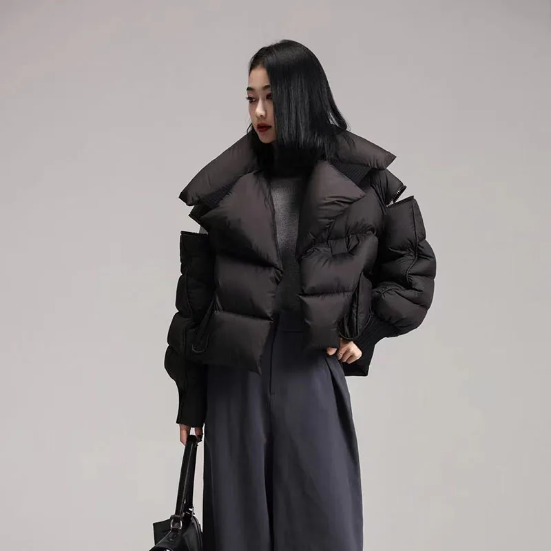 Pardessus 2025 nouvelle mode femmes doudoune hiver duvet de canard blanc de haute qualité tricoté Patchwork revers femmes doudoune H132