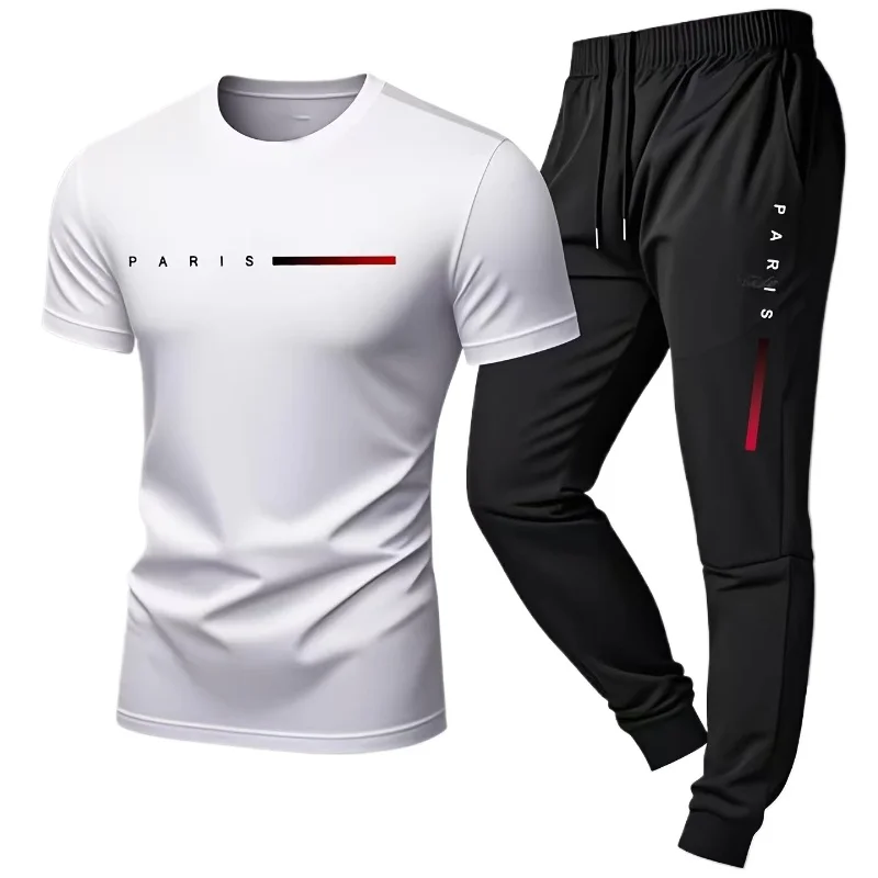 PARIS costume décontracté pour hommes printemps et été nouveau style lettre imprimée tendance américaine sport mode pantalon à manches courtes ensemble deux pièces