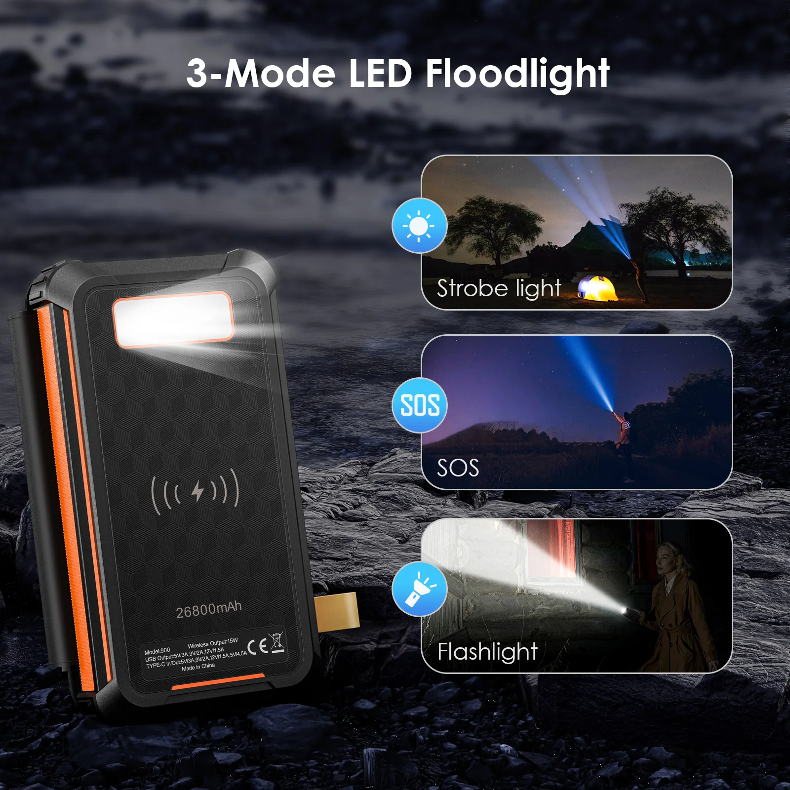 puissance de charge, raccourcissant votre temps de charge. La banque d'énergie solaire sans fil de 15 W peut vous libérer des câbles emmêlés.Il peut charger tous les téléphones mobiles prenant en charge la technologie de chargement sans fil Qi.