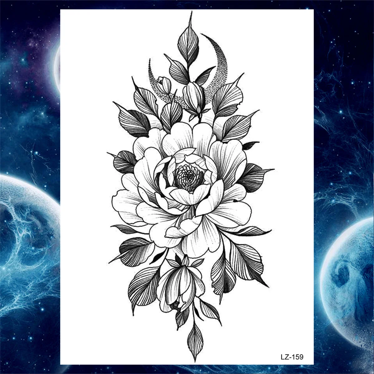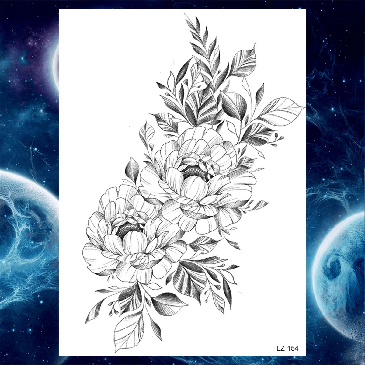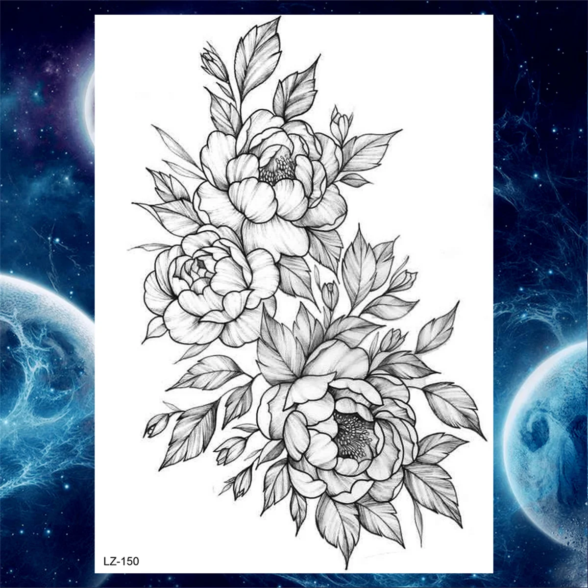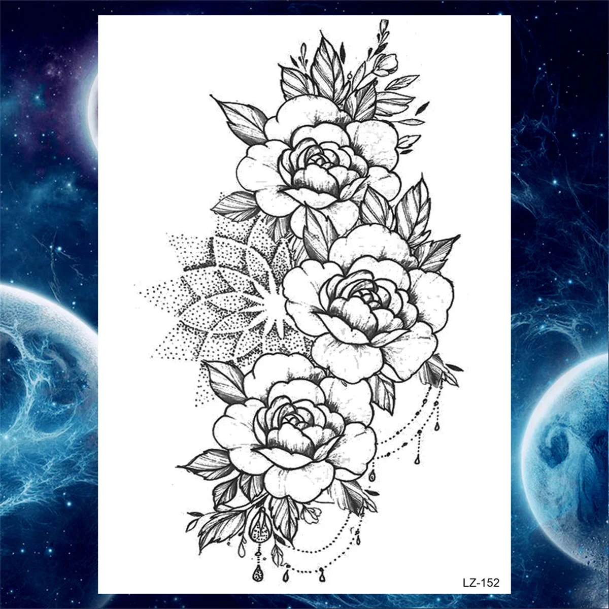 Diamant fleur tatouages temporaires pour femmes filles faux bijoux tatouage autocollant pivoine Rose flore henné noir grand Tatoo imperméable