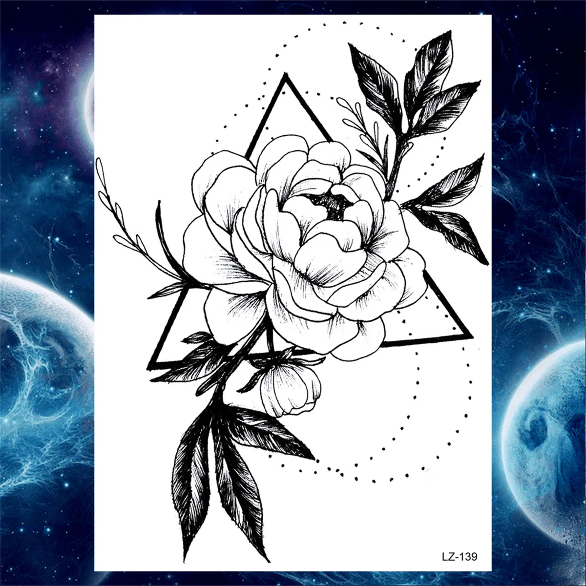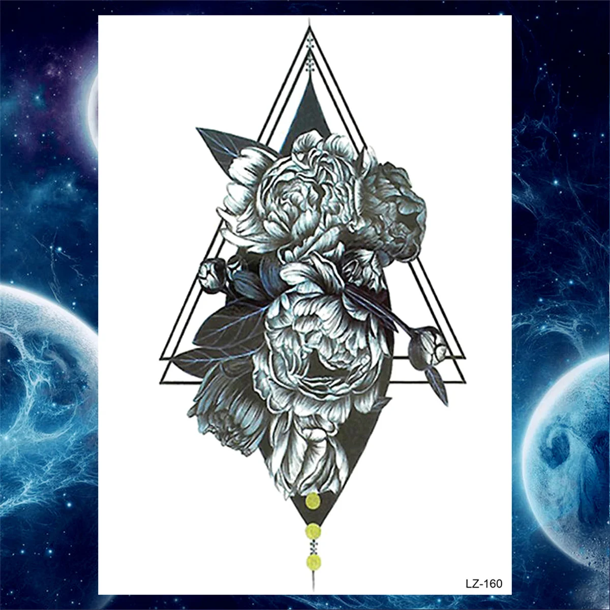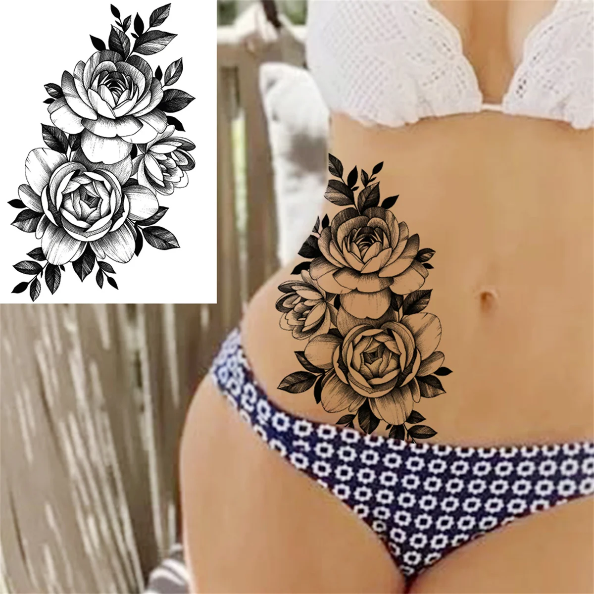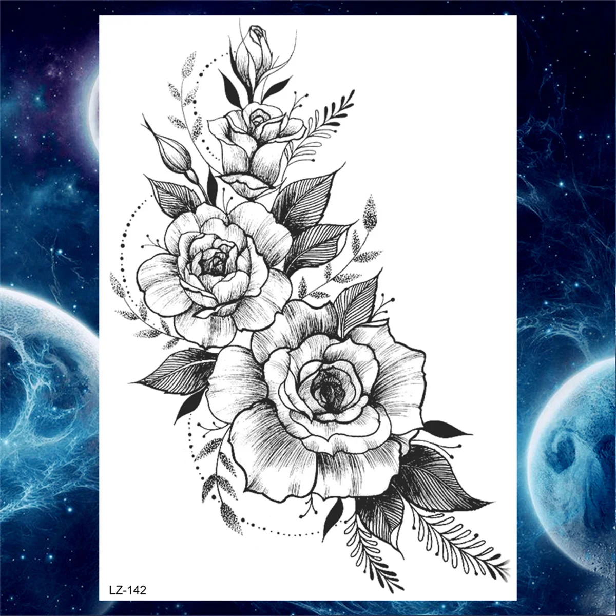 Diamant fleur tatouages temporaires pour femmes filles faux bijoux tatouage autocollant pivoine Rose flore henné noir grand Tatoo imperméable