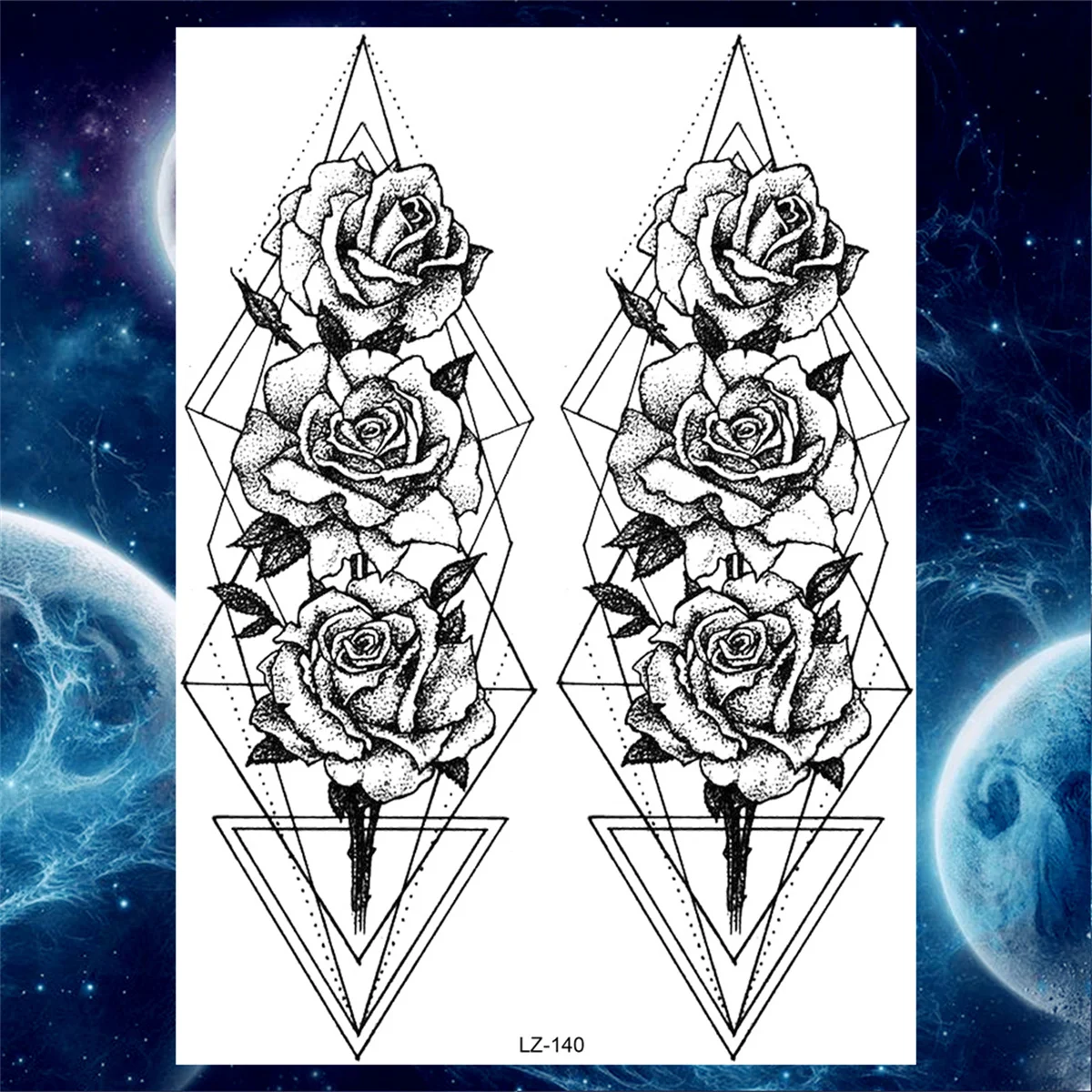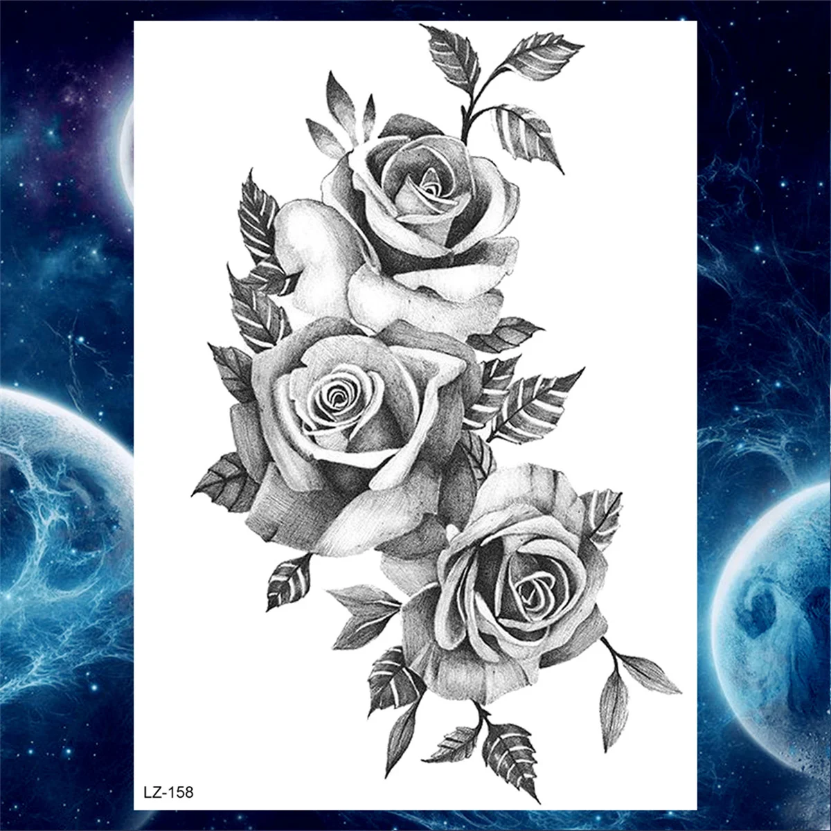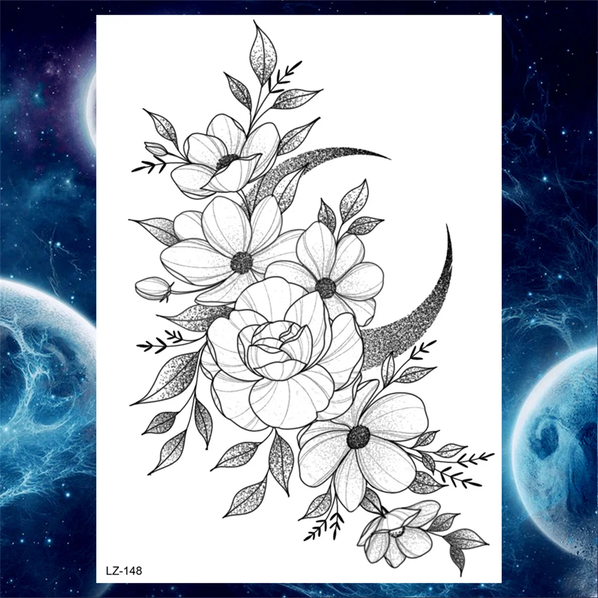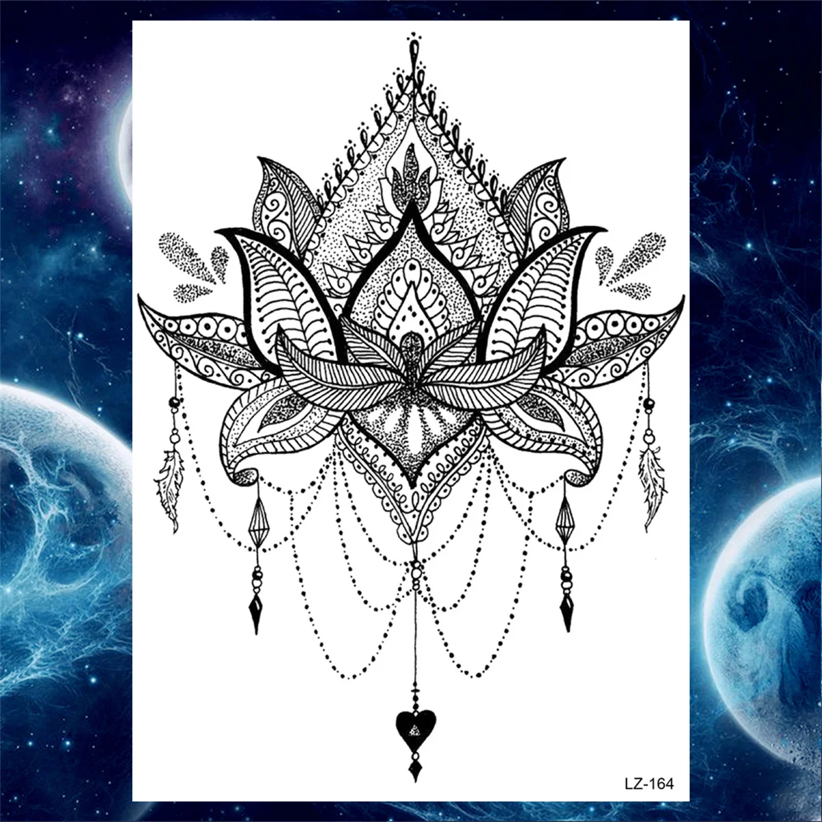 Diamant fleur tatouages temporaires pour femmes filles faux bijoux tatouage autocollant pivoine Rose flore henné noir grand Tatoo imperméable
