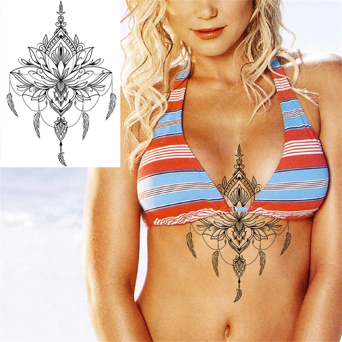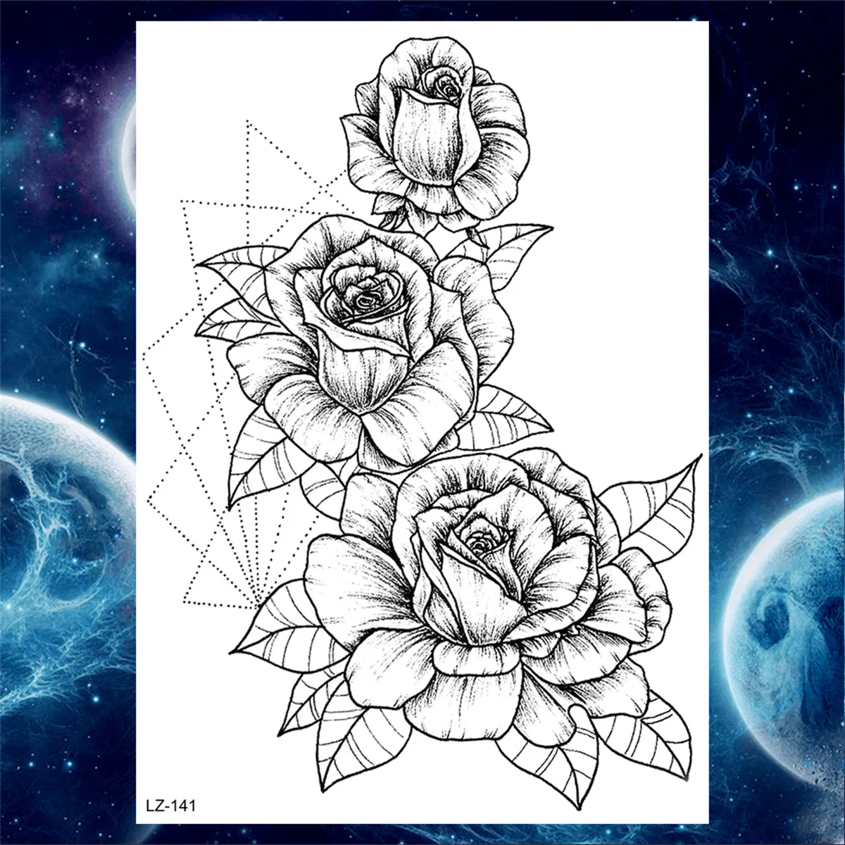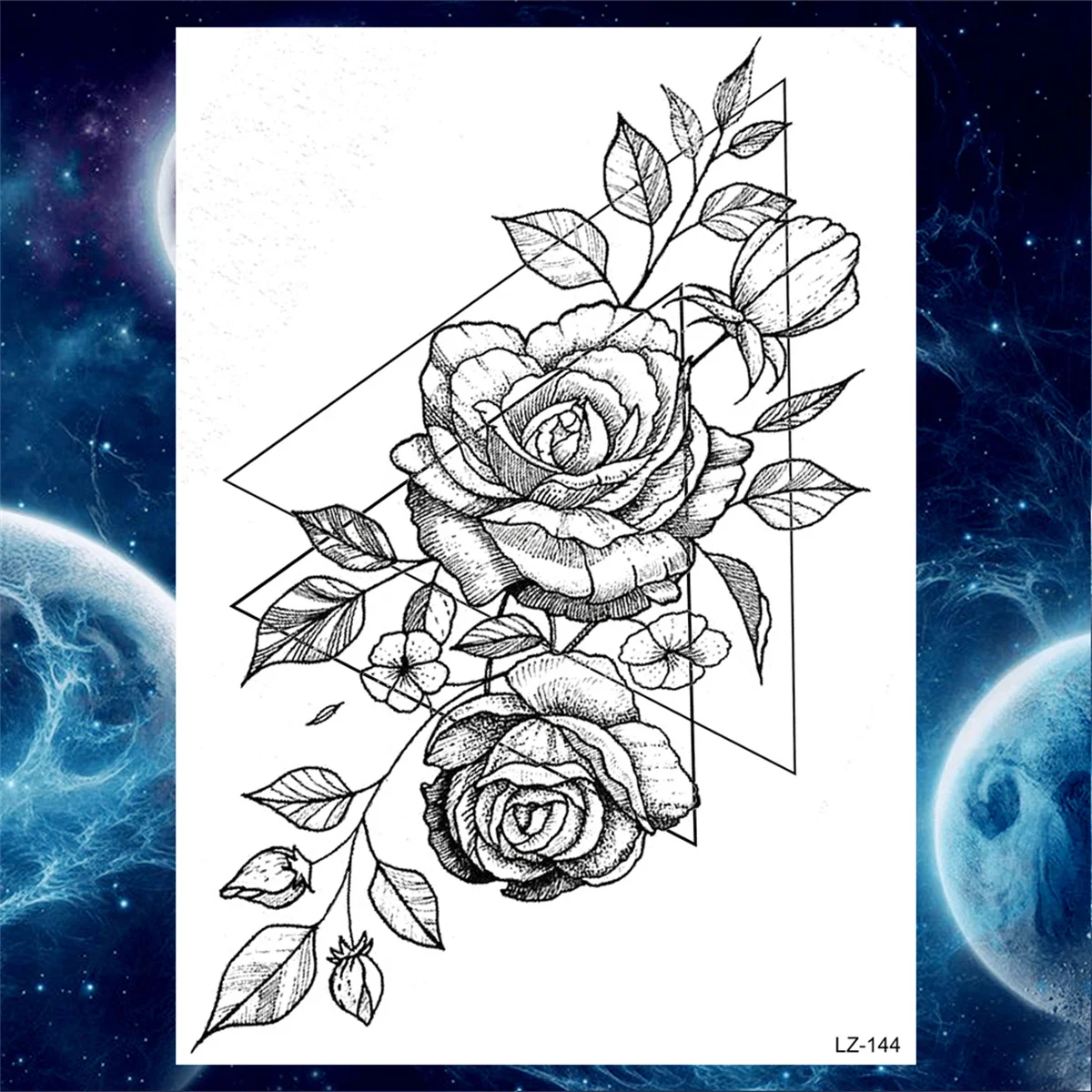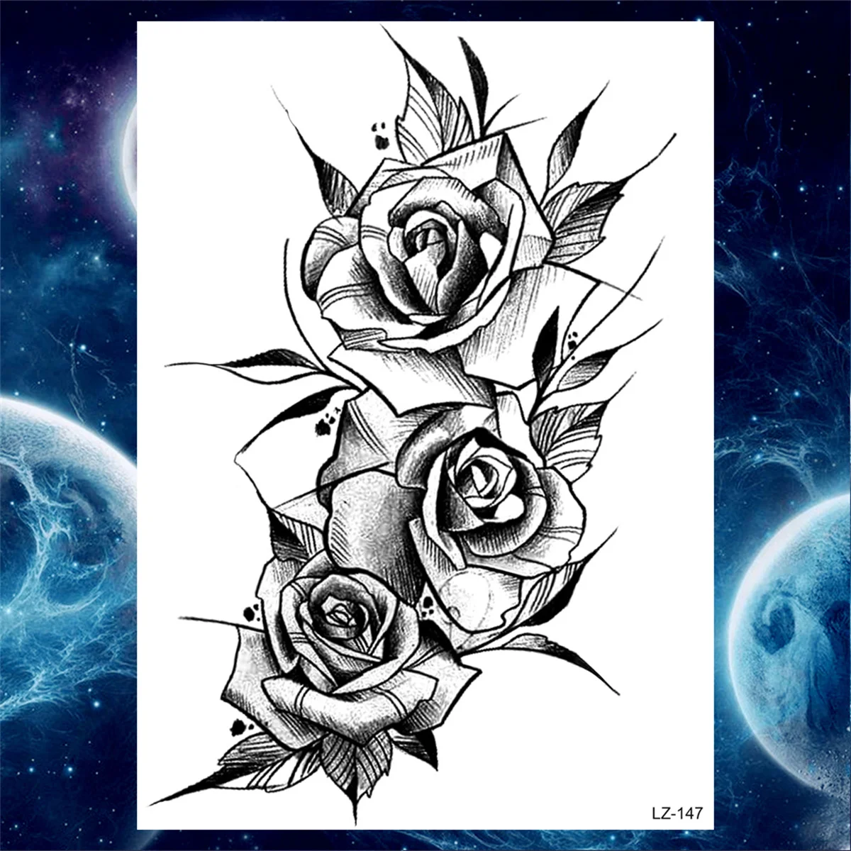 Diamant fleur tatouages temporaires pour femmes filles faux bijoux tatouage autocollant pivoine Rose flore henné noir grand Tatoo imperméable