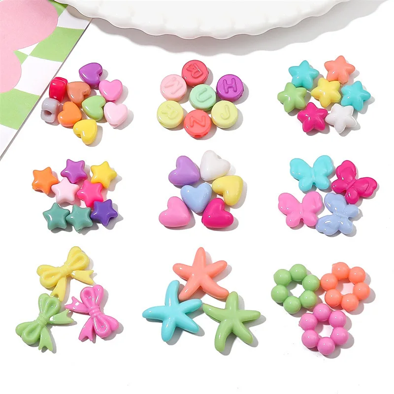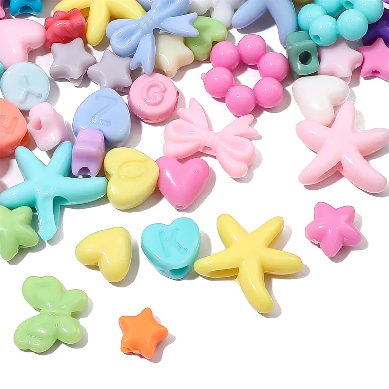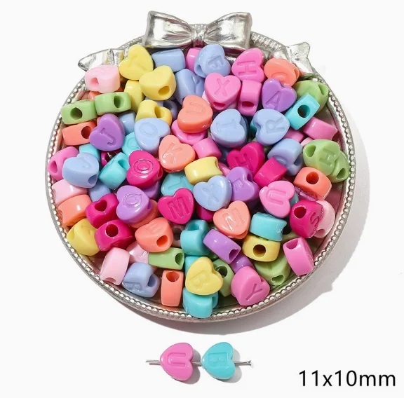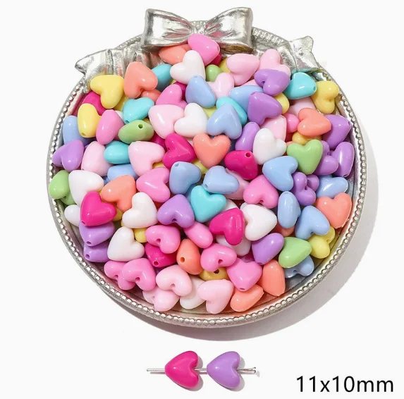 Perles en acrylique en forme de cœur pour enfants, perles intercalaires en vrac, matériaux de bricolage pour la fabrication de bijoux faits main, pendentifs, colliers, bracelets