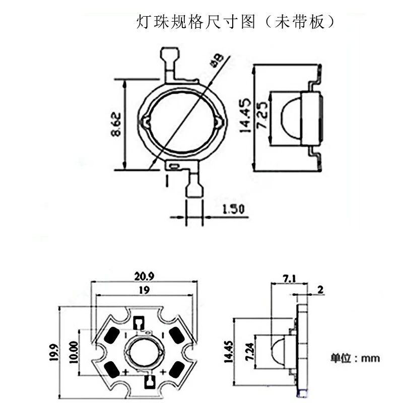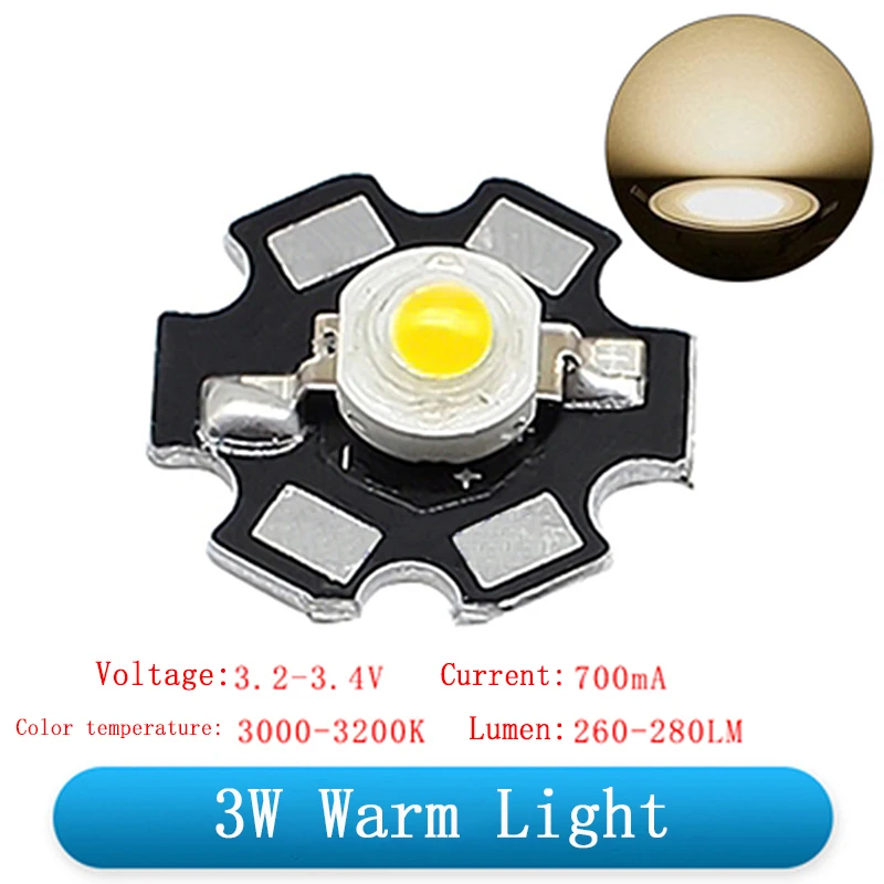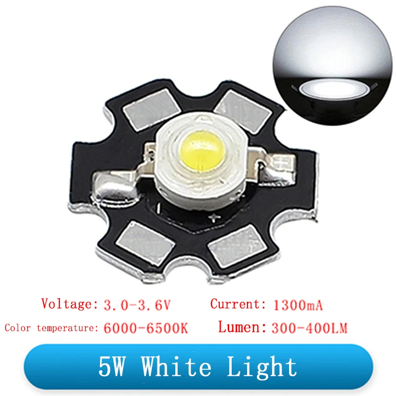 Perles LED haute puissance 1W 3W 5W, spectre complet, blanc pur/chaud avec étoile noire de 20mm, dissipateur thermique PCB, substrat en aluminium, lumières DIY