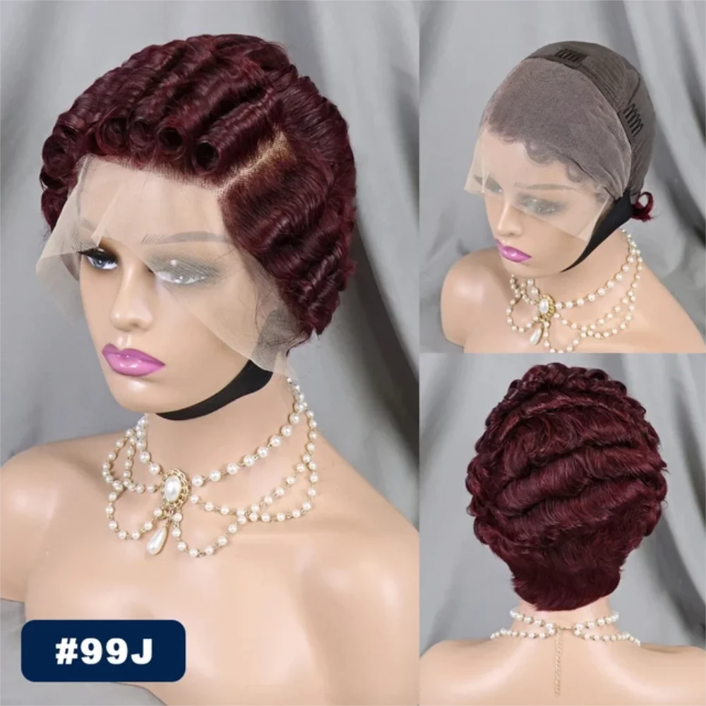 Perruque coupe lutin bon marché courte bouclée avant de lacet perruques de cheveux humains pour les femmes noires vague de doigt brésilienne 13x4 perruques de dentelle transparente vente