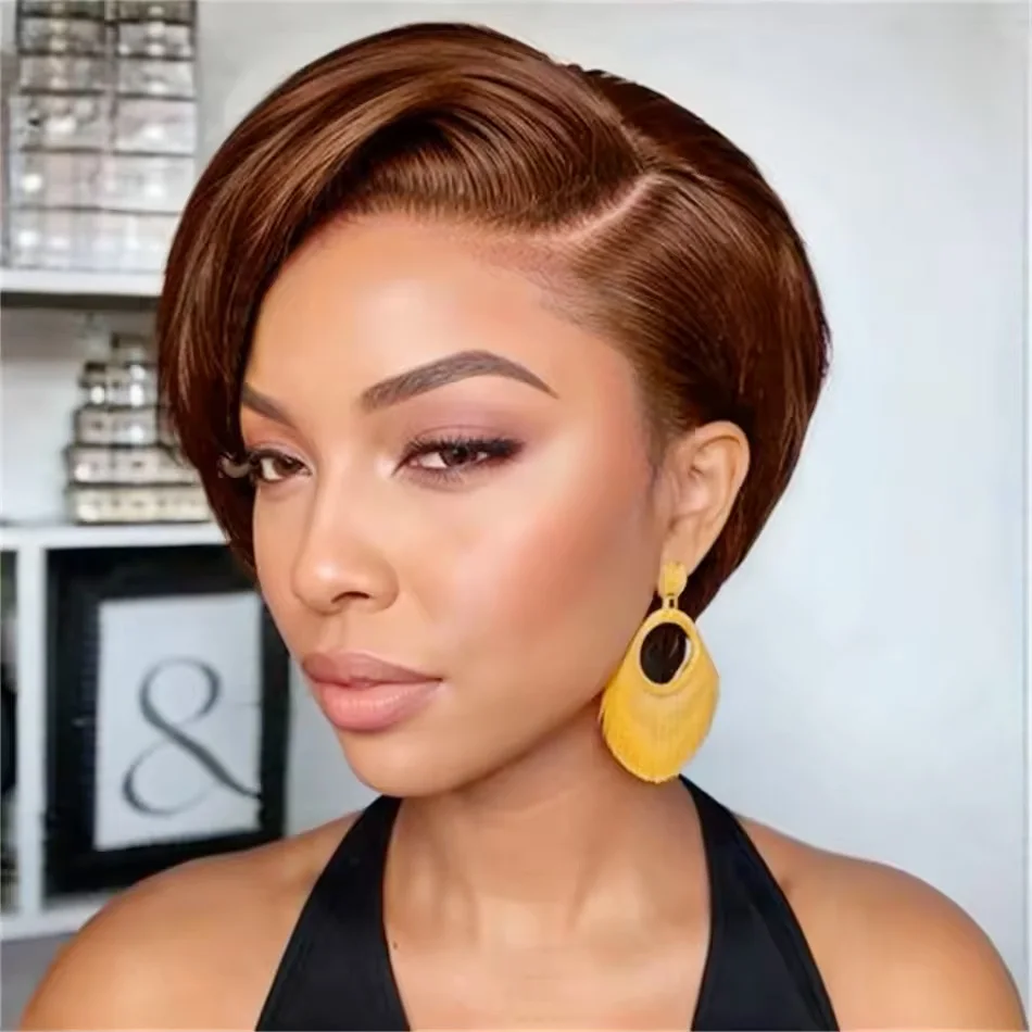 Perruque coupe lutin droite perruques courtes Bob 13x4 perruques avant de dentelle cheveux humains pré plumés coupe lutin perruque cheveux humains brésiliens 100%