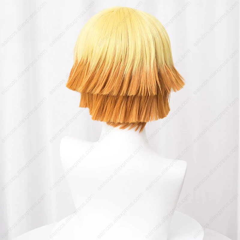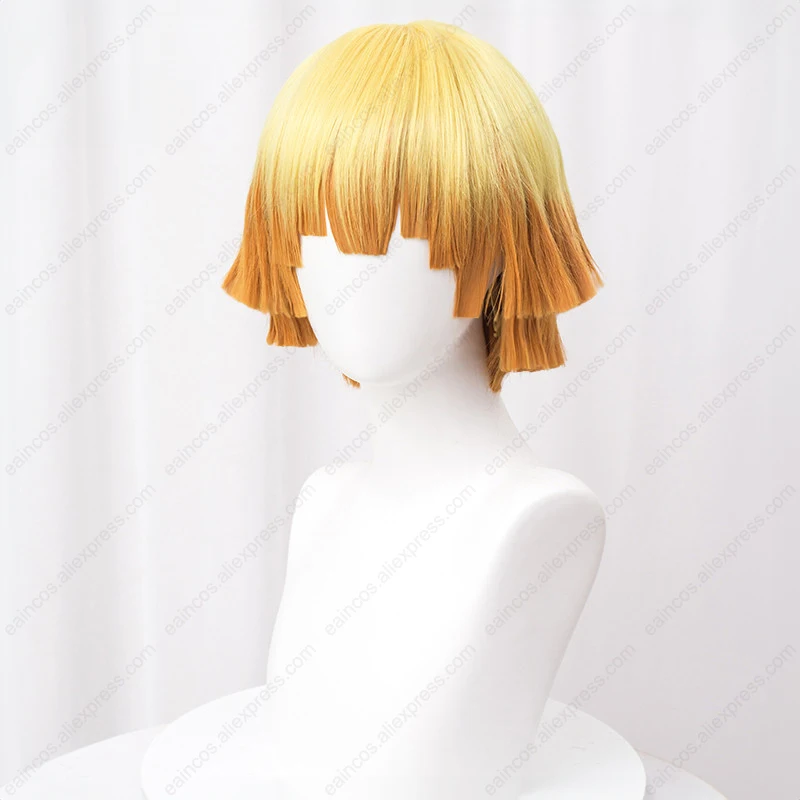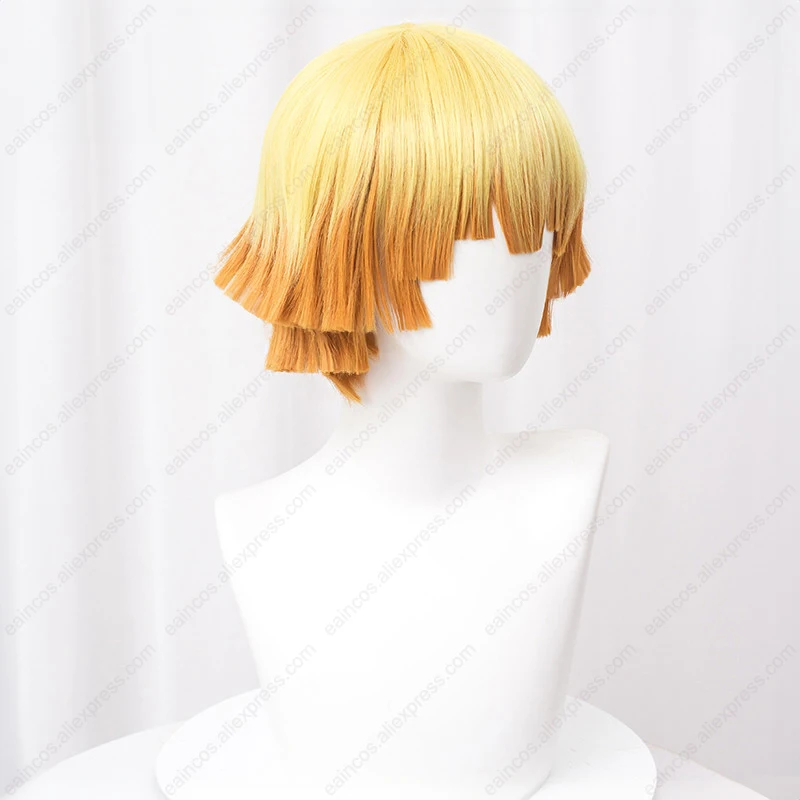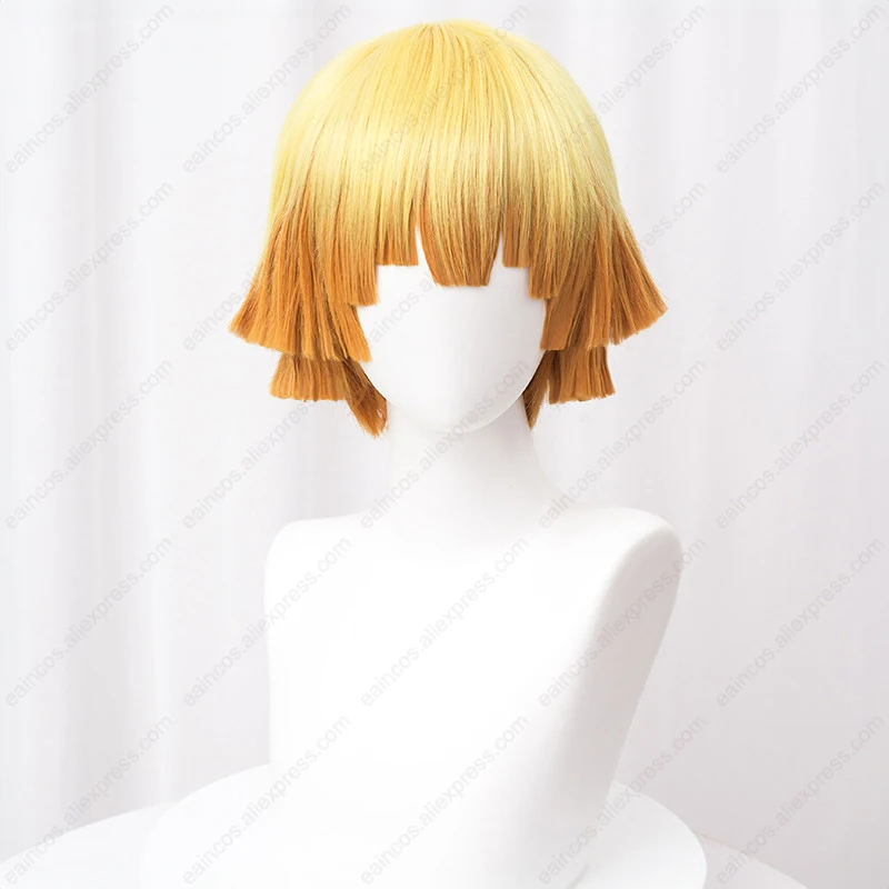 Perruque de Cosplay Anime Agatsuma Zenitsu, 30cm, perruques dégradées jaunes, cheveux synthétiques résistants à la chaleur