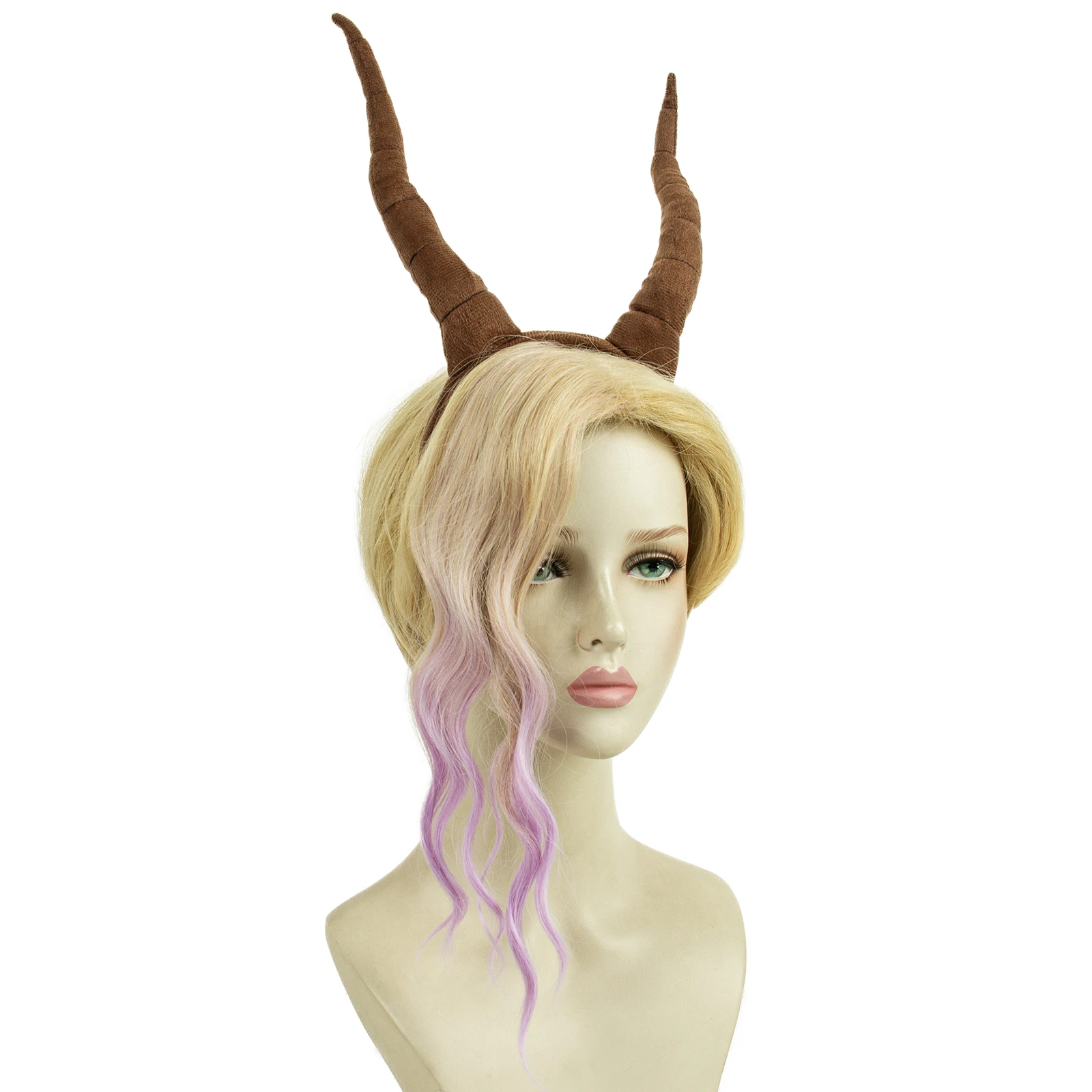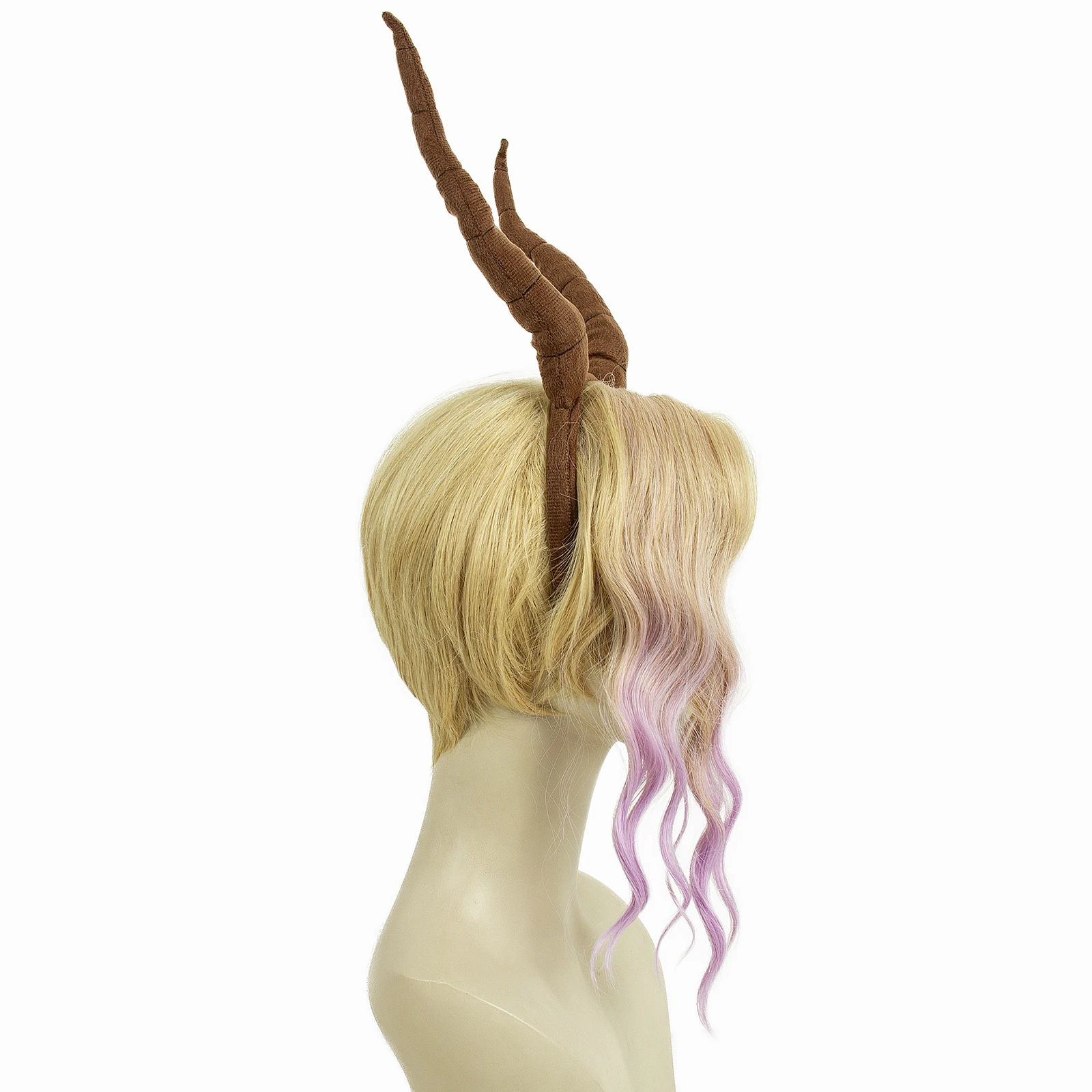 Perruque de costume de chèvre REEWES-Gazelle pour femmes, perruques synthétiques courtes blondes ondulées violettes pour femme, adolescent, cosplay d'anime, fête de théâtre