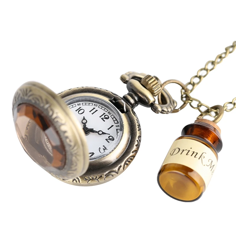 Petite montre de poche pour femmes, horloge Drink Me, collier pendentif avec bouteille, cadeaux d'anniversaire pour femmes et filles, livraison directe