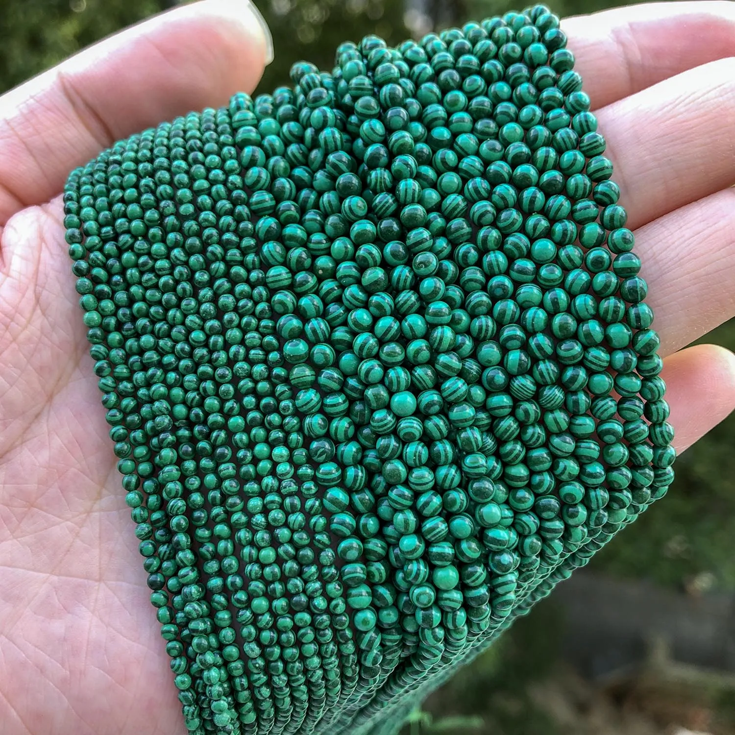 Petite perle en pierre naturelle Malachite de 2mm 3mm, pour bricolage, accessoire de chaîne de ceinture, petit Bracelet élégant, collier, fabrication de bijoux