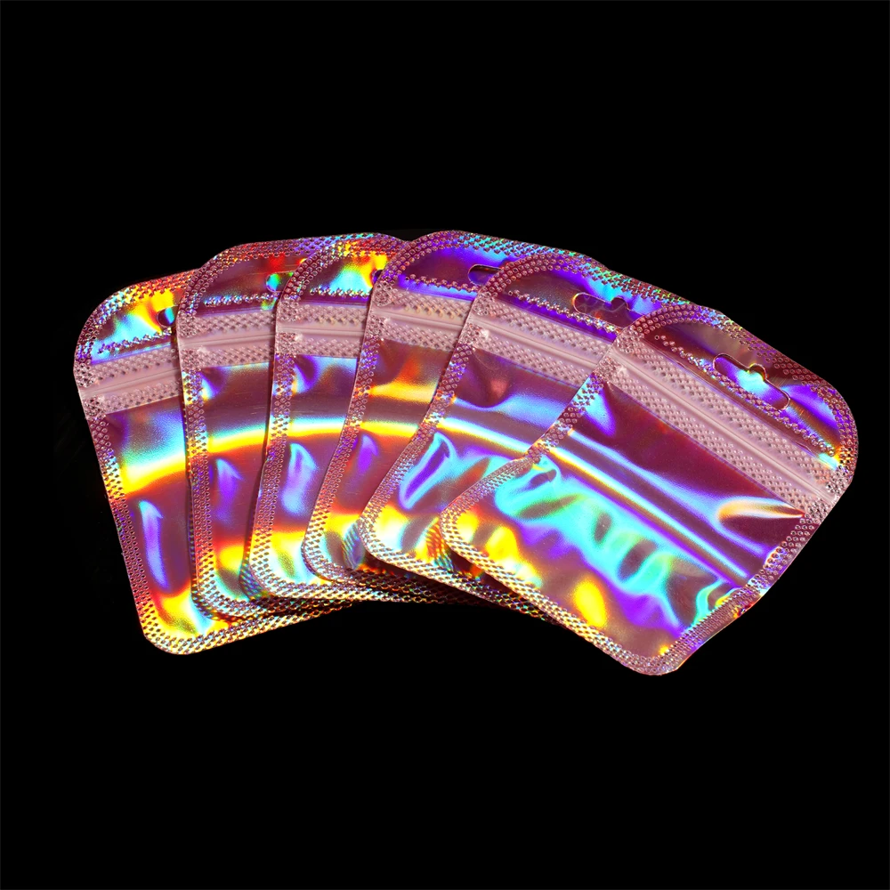 Petits sacs en plastique Laser auto-scellants, 50 pièces, pochette à bijoux avec fenêtre d'affichage transparente, emballage de bijoux à bricoler soi-même, sac de rangement cadeau