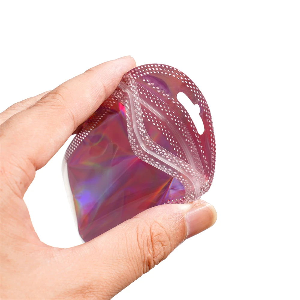 Petits sacs en plastique laser auto-scellants pour pochette à bijoux avec fenêtre d'affichage transparente, emballage de bijoux à bricoler soi-même, sac de rangement cadeau, 50 pièces