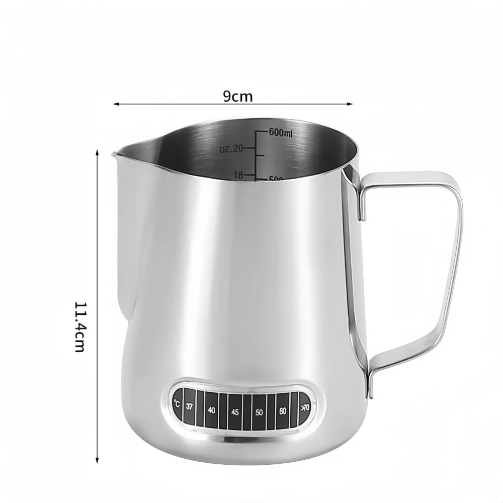 Pichet à mousseur à café et lait, Patch de détection de température, échelle précise en acier inoxydable, contrôle du Volume, outil à café professionnel avancé