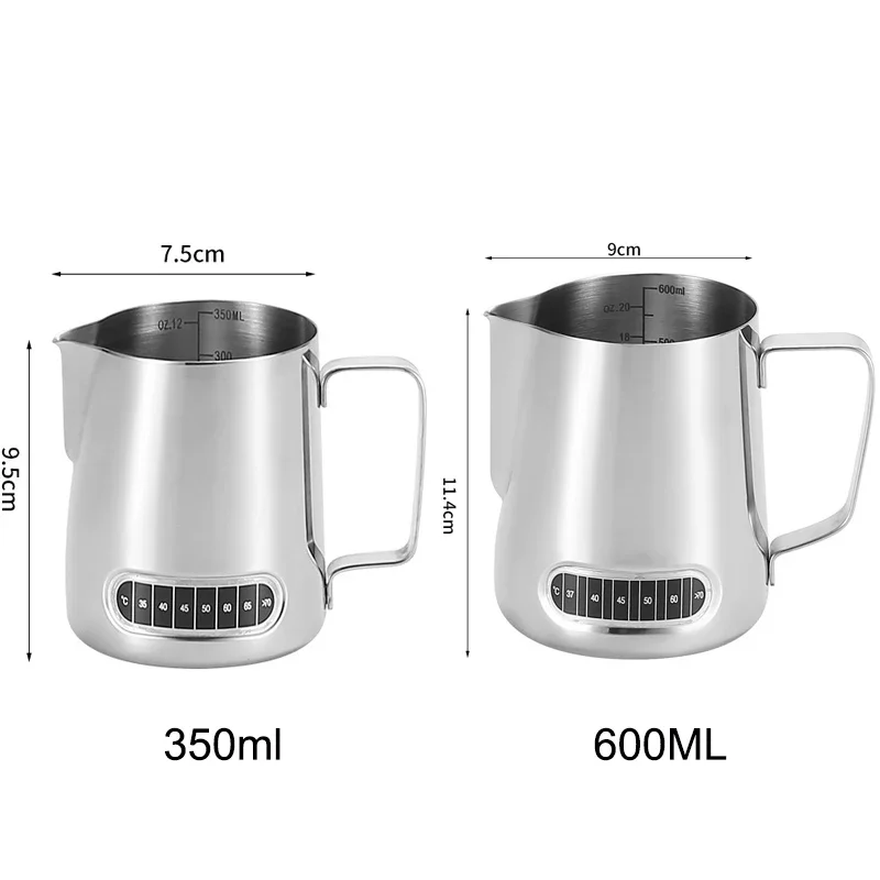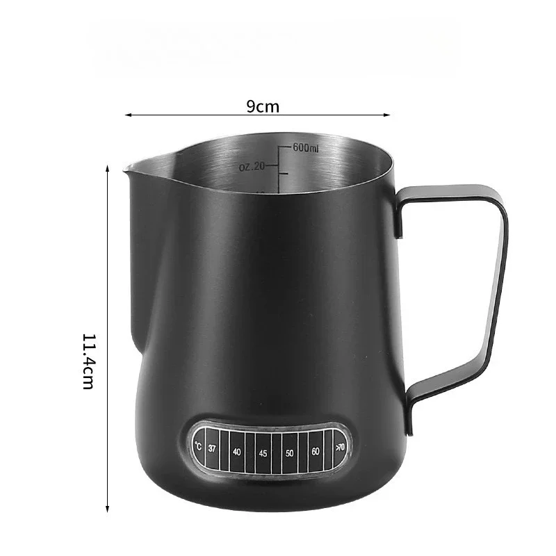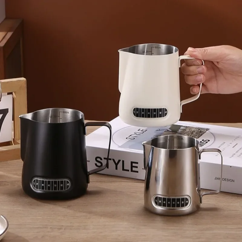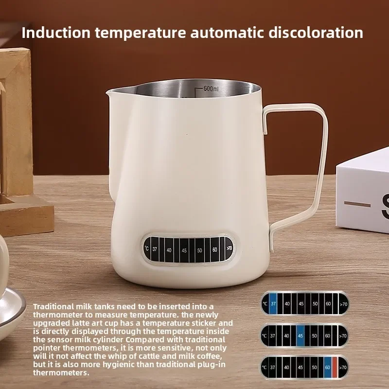 Pichet mousseur à café et lait, Patch de détection de température, échelle précise en acier inoxydable, contrôle du Volume, outil à café professionnel avancé
