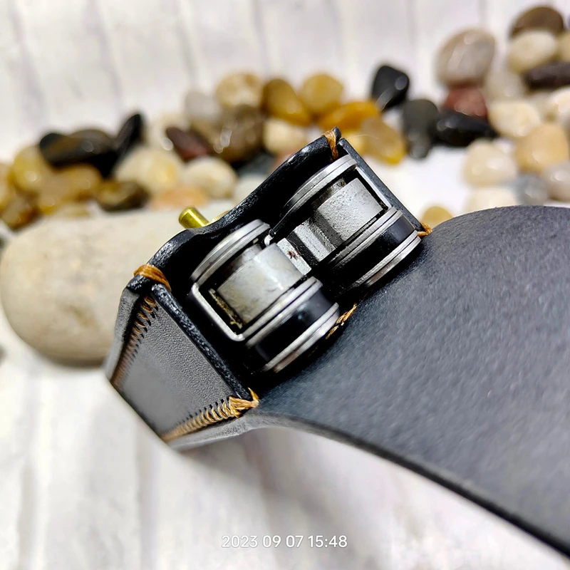 L'acier ne peut pas pénétrer 2 couches de cuir à la fois, sinon l'apparence serait endommagée.Nos artisans ne pénètrent qu'une seule couche de cuir à la fois. Une fois terminé de pénétrer les deux, les créateurs doivent garantir que les trous ont une correspondance individuelle.Ensuite, il est cousu à la main avec du fil boehmeria imbibé de cire.