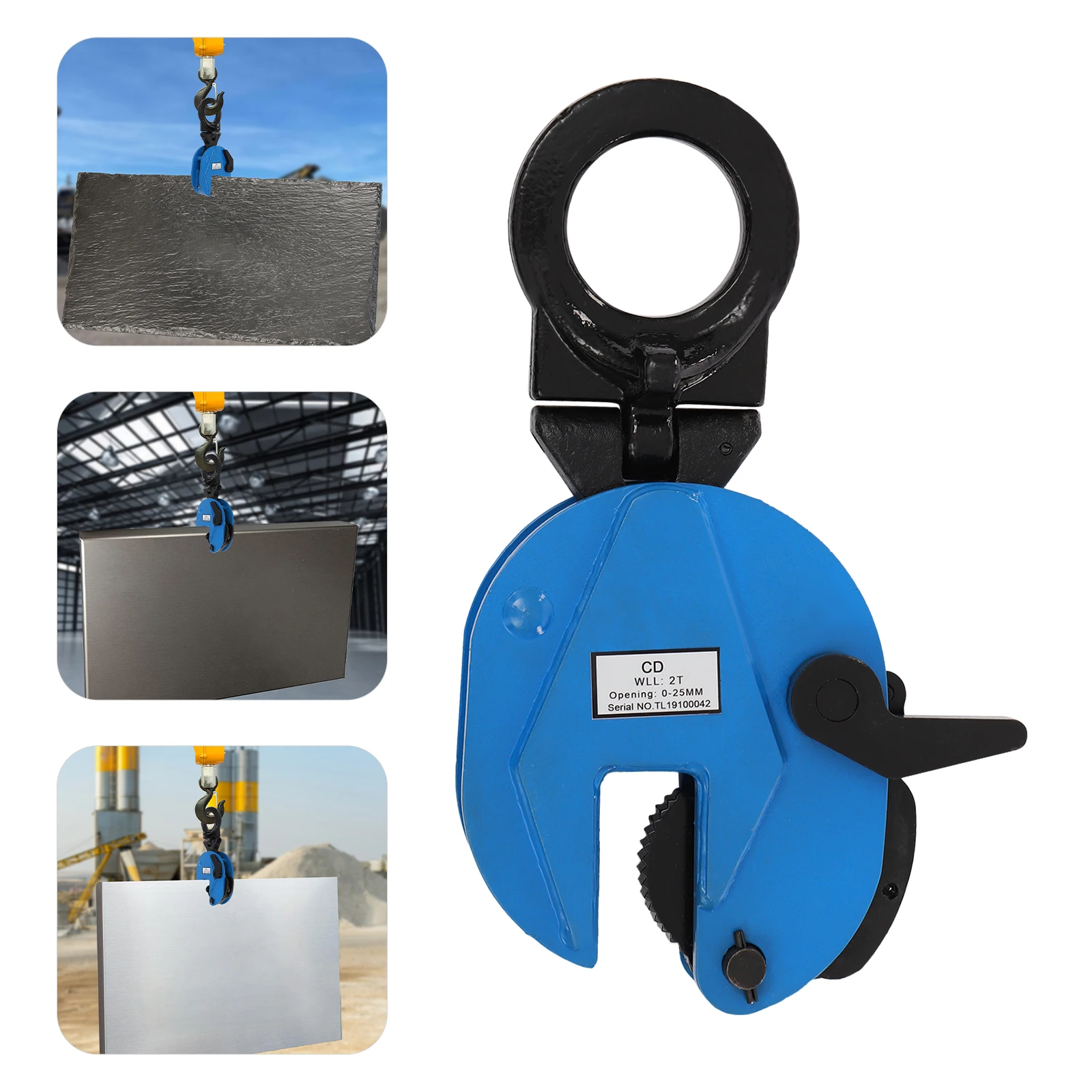 Cette pince de levage de plaque a un grand trou de mâchoire pour un levage sûr et sécurisé de planches de différentes épaisseurs.