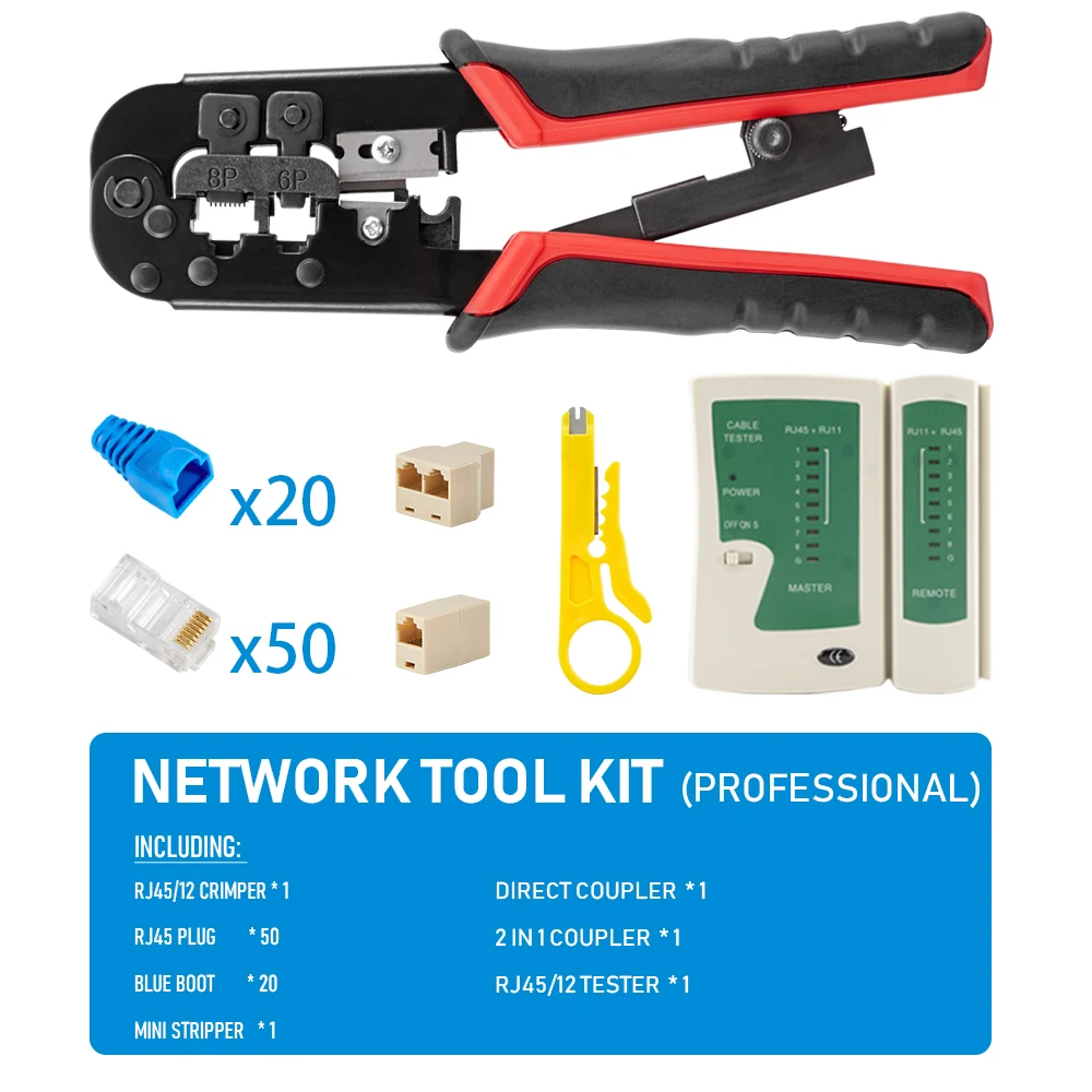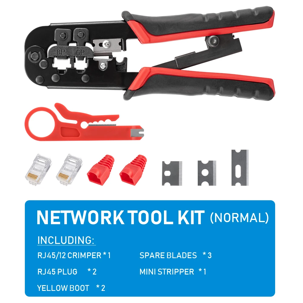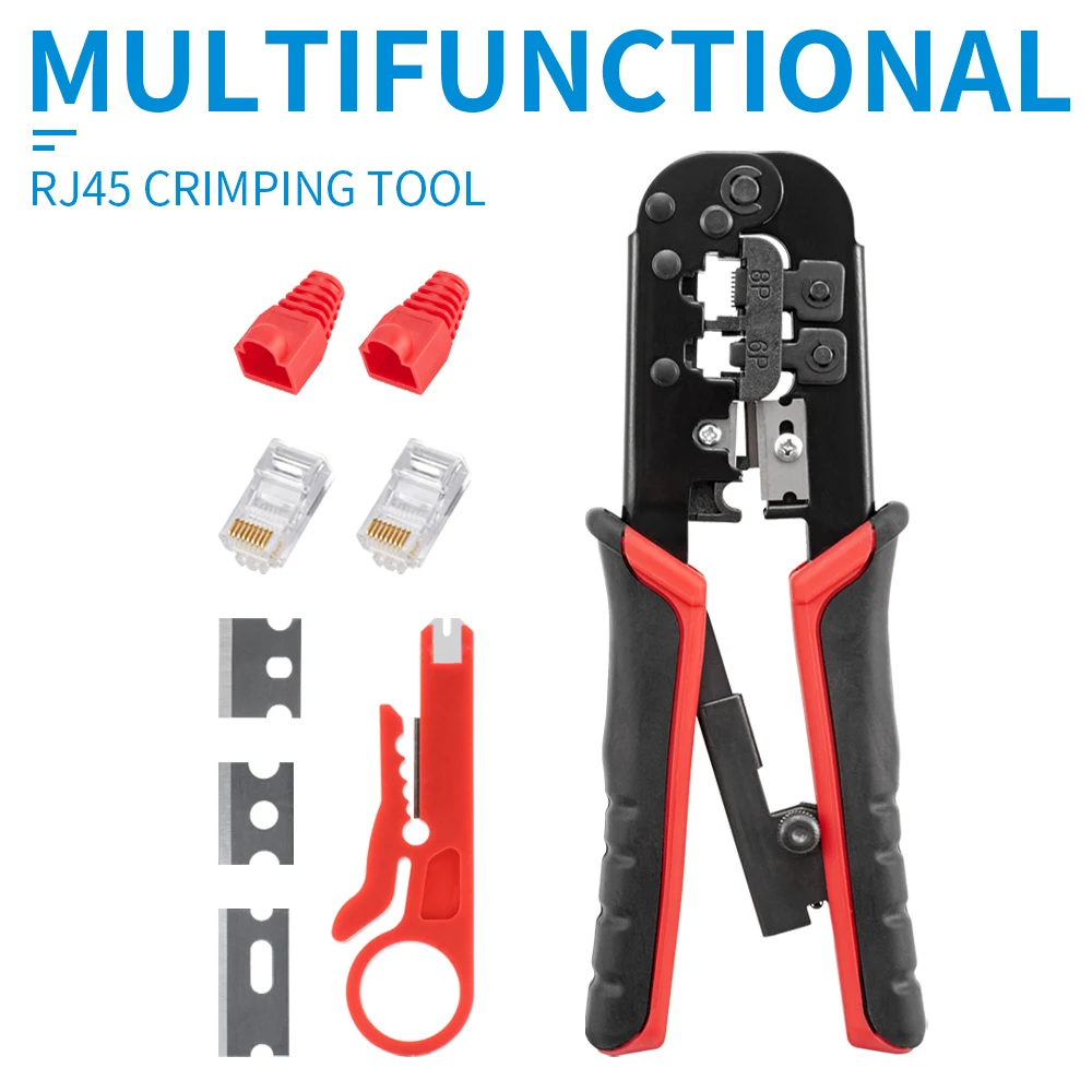 Pince à sertir RJ11 RJ12 RJ45 pour câbles réseau Ethernet LAN, coupe-câbles, dénudeur, accessoires pour connecteurs 8P8C et capuchons de protection