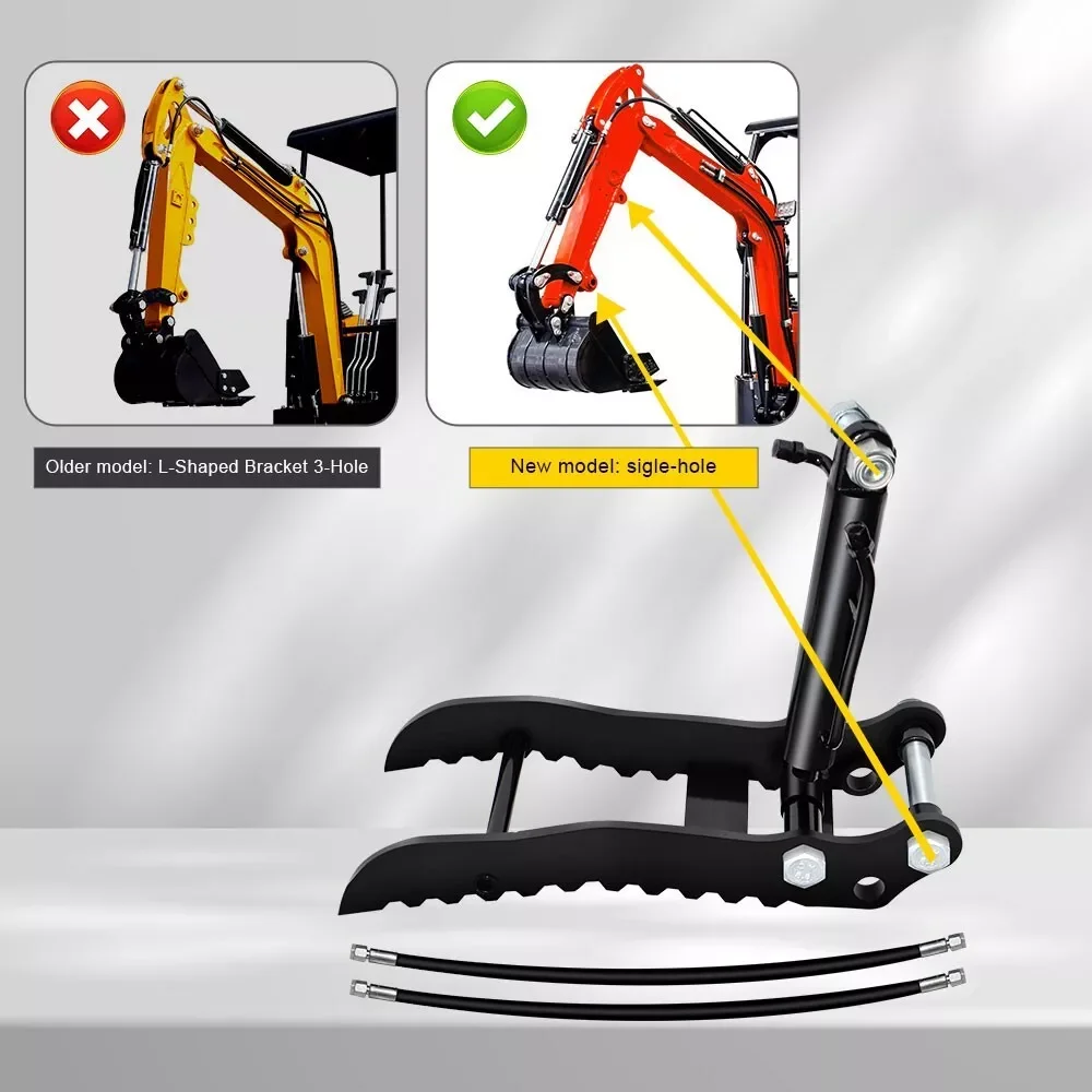 Veuillez vérifier les dimensions étiquetées avant d'acheter pour vous assurer que les dimensions de montage de la pince à pouce hydraulique s'adaptent à votre pelle.