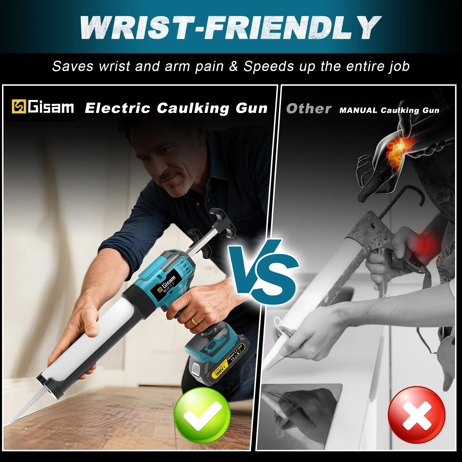 - Lorsque vous relâchez la gâchette, l'interrupteur à bascule rebondira automatiquement pour empêcher l'excès de colle de glisser.La technologie anti-rebond permet d'économiser plus de temps et d'énergie.Ce pistolet à sceller est supérieur pour tous les mastics courants de 10 onces/300 ml.