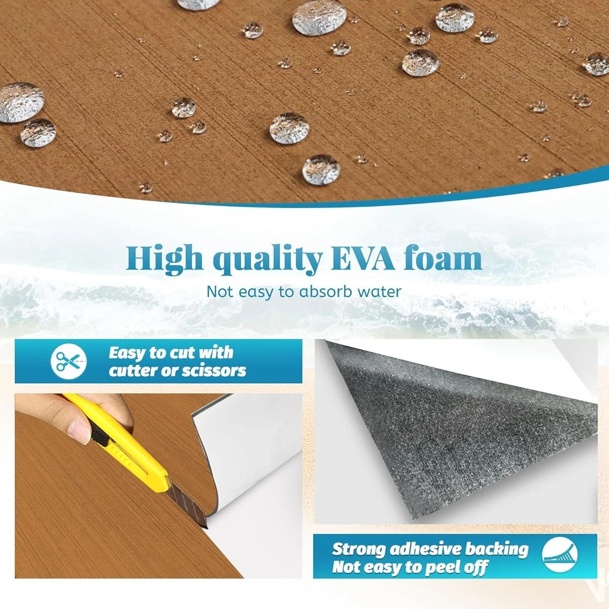 Conçu pour les yachts, les bateaux à moteur, les jet-skis et les projets de revêtements de sol marins sur mesure. Facile à couper pour s'adapter à différentes configurations de terrasse.