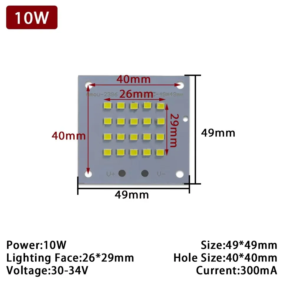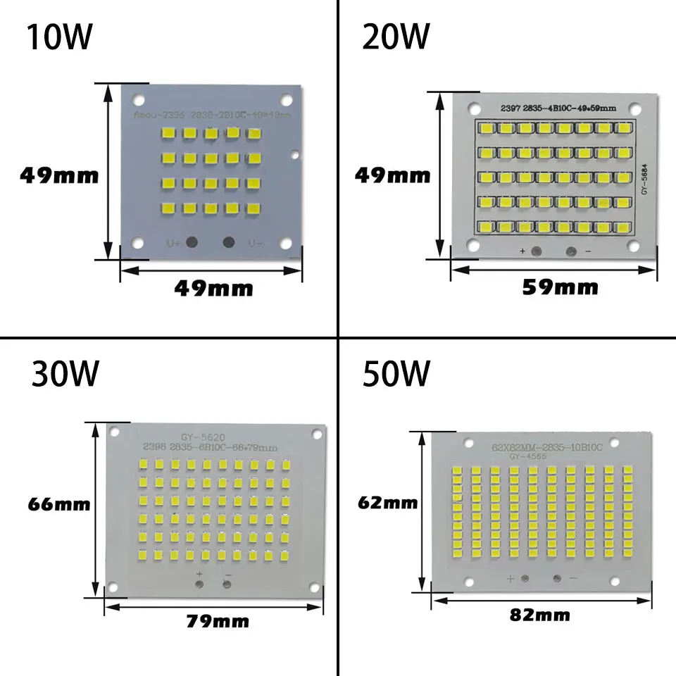 100% pleine puissance LED projecteur PCB 10W 20W 30W 50W SMD2835 lampe à LED led carte PCB plaque d'aluminium pour led 10 20 30 50W projecteur Retour à notre boutique Bienvenue à SUFI Informations pour 10W 1. Puissance: 10W 2. Couleur: blanc chaud 3000-3500K/blanc pur 6000-6500K 3. Taille: 49*49mm Visage d'éclairage: 26*29mm 4. Position du trou: 40*40mm 5. Tension: 30-34V Courant: 300mA Information pour 20W 1. Puissance: 20W 2. Couleur: blanc chaud 3000-3500K/blanc pur 6000-6500K 3. Taille: 59*49mm Visage d'éclairage: 42*32mm 4. Position du trou: 46*40mm 5. Tension: 30-34V Courant: 600mA Informations pour 30W 1. Puissance: 30W 2. Couleur: blanc chaud 3000-3500K/blanc pur 6000-6500K 3. Taille: 79*66mm Visage d'éclairage: 54*38mm 4. Position du trou: 73*58mm 5. Tension: 30-34V Courant: 900mA Informations pour 50W 1. Puissance: 50W 2. Couleur: blanc chaud 3000-3500K/blanc pur 6000-6500K 3. Taille: 82*62mm Face d'éclairage: 72*35mm 4. Position du trou: 54*54mm 5. Tension: 30-34V Courant: 1500mA Merci à vous