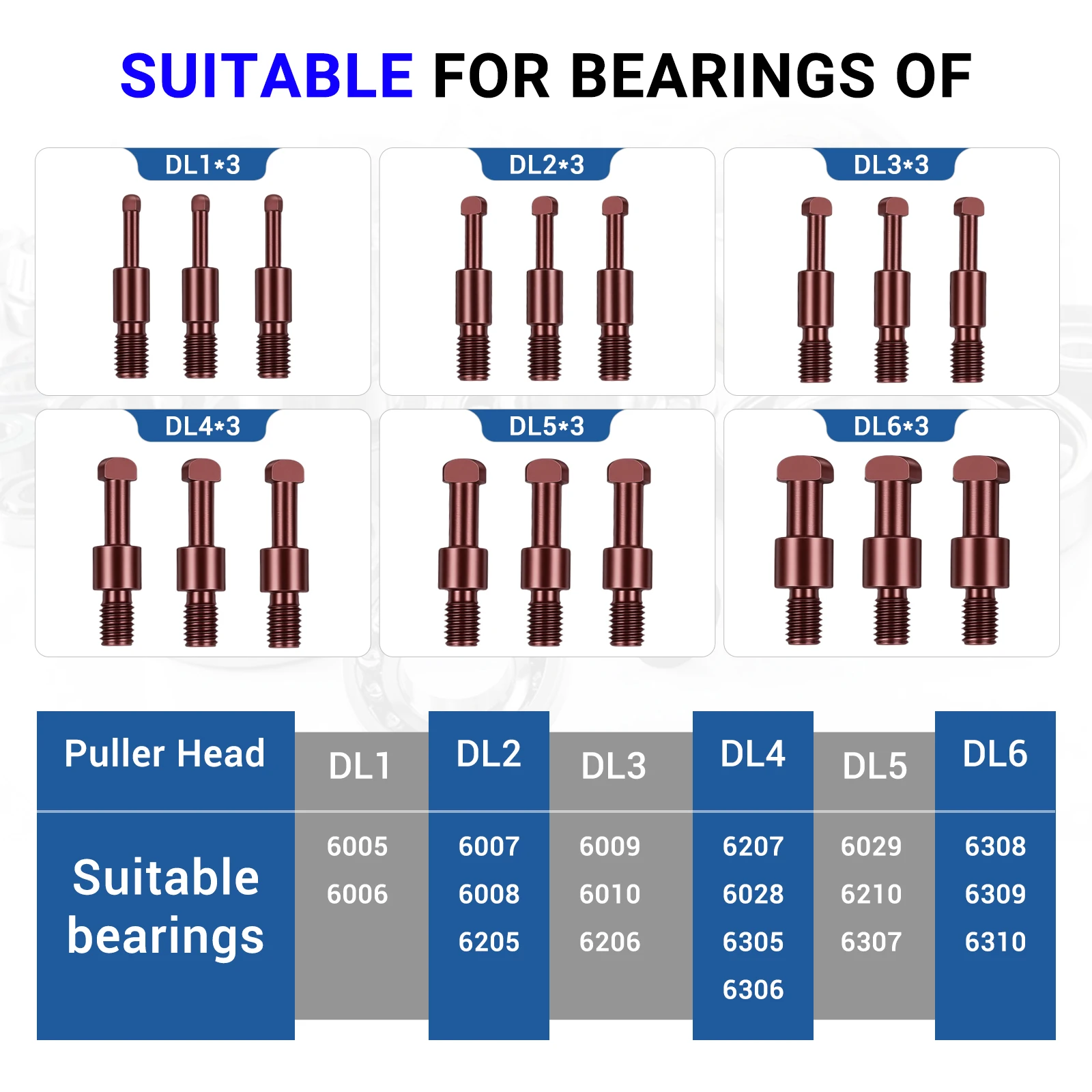 Modèles applicables : notre ensemble d'outils d'extraction de démontage de roulements 21 en 1 convient à divers modèles, dont 6005, 6006, 6007, 6008, 6009, 6010, 6205, 6206, 6207, 6208, 6209, 6210, 6305, 6306, 6307, 6308, 6309, et 6310, idéal pour retirer différents types de roulements, engrenages et kits.