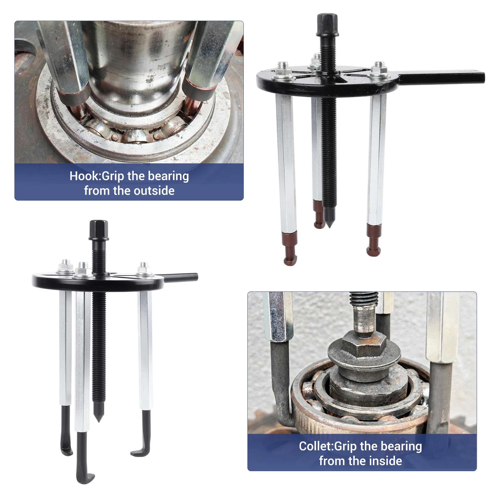 Extracteur de roulement haut de gamme : le kit d'outils d'extraction de roulements 21 en 1 à trois mâchoires construit avec une construction robuste forgée, utilisant de l'acier rouge de haute dureté traité thermiquement pour une résistance ultra.La finition en oxyde noir de l'extracteur à trois mâchoires à trou intérieur assure une résistance à la corrosion et une durabilité à long terme, ce qui le rend idéal pour le démontage de roulements tenaces.