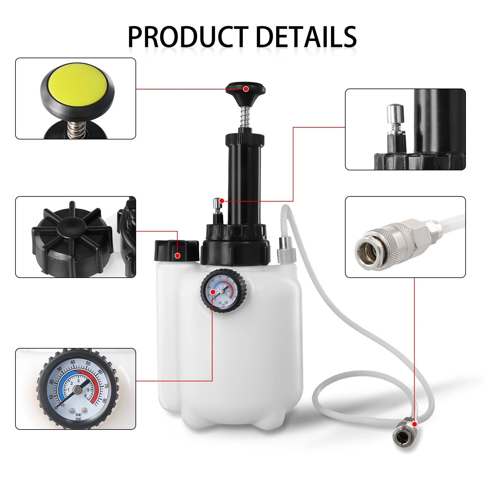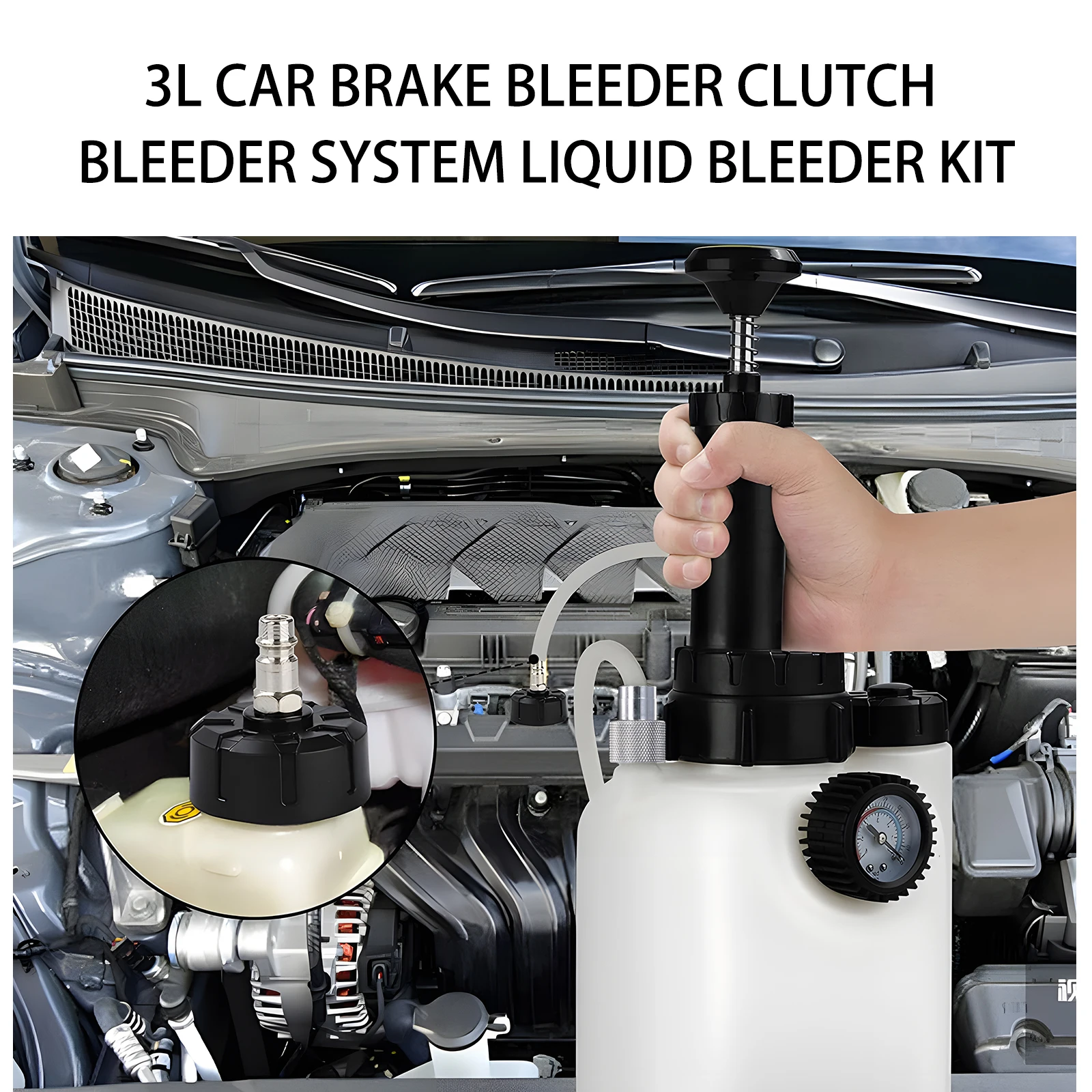 Podofo 3L Kit de purge de liquide de frein de voiture purgeur de pression avec extracteur de liquide de frein 1L pompe de liquide de pression de frein sous vide de 85mm