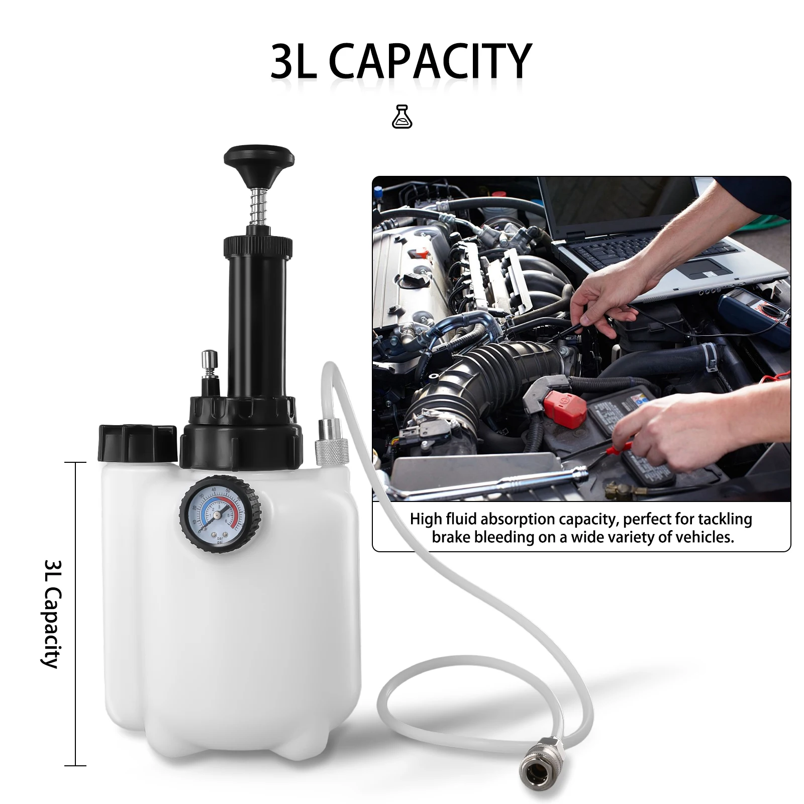 Capacité de 3 L : capacité d'absorption de fluides élevée, parfaite pour lutter contre les saignements des freins sur une grande variété de véhicules.