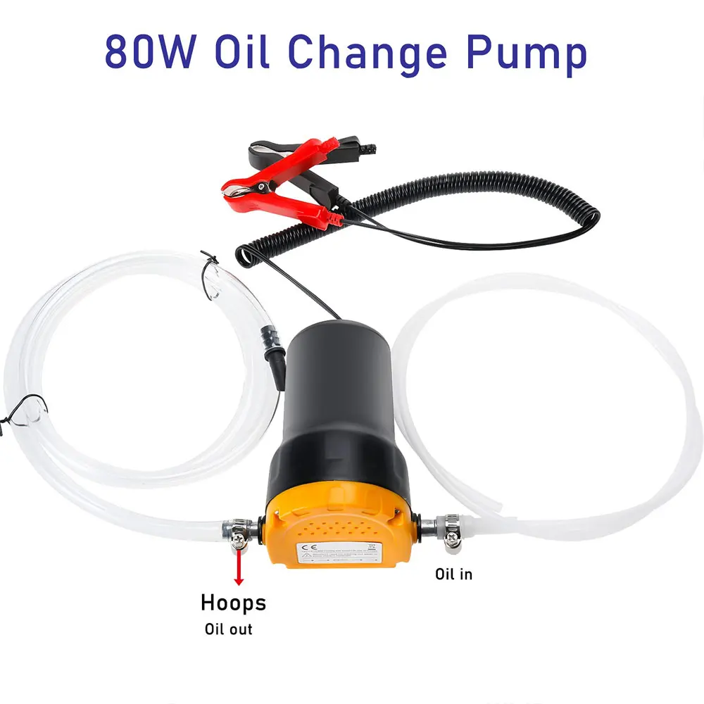2. Changement d'huile rapide-la puissance DC 12V 80W est suffisante, il vous suffit de serrer le clip conducteur sur le moteur et d'allumer l'interrupteur pour démarrer, afin que vous puissiez terminer le travail de pompage d'huile en douceur et efficacement, en remplaçant la méthode traditionnelle de changement d'huile et en réduisant la charge de travail lourde (débit diesel: 5L/m, débit d'huile 1L/m).