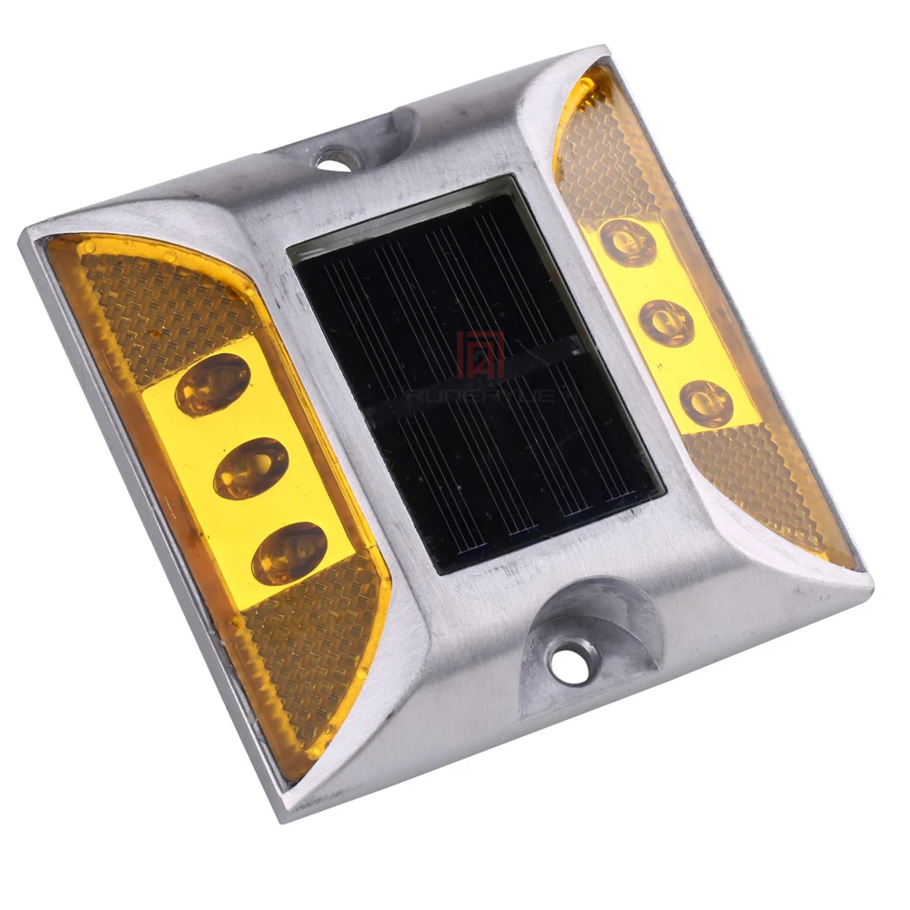 Feu de signalisation carré populaire haute luminosité Ip68 clignotant ou toujours allumé en aluminium réfléchissant Led œil de chat goujon de route solaire