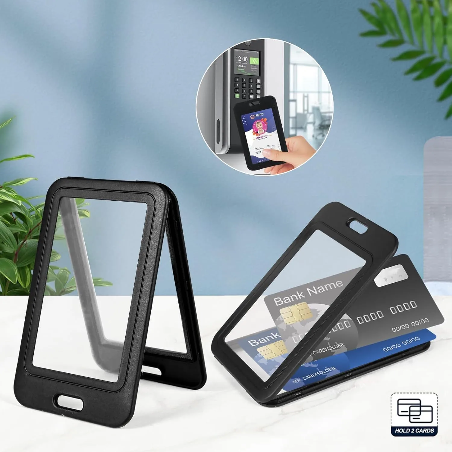 Porte-carte Vertical avec sac pour cartes Vertical en plastique dur Double face, carte d'identité noire, carte de crédit, housse de Protection pour carte-clé