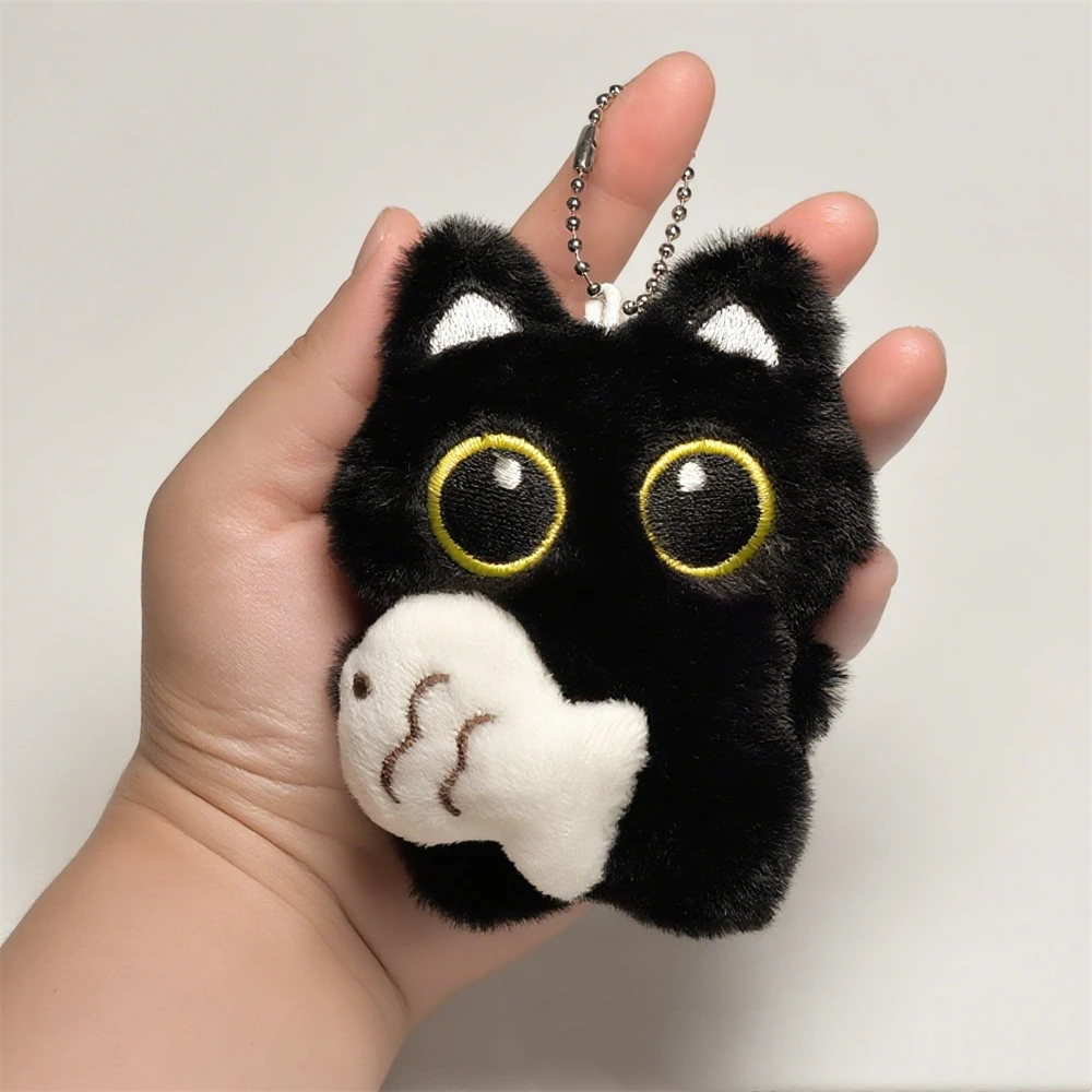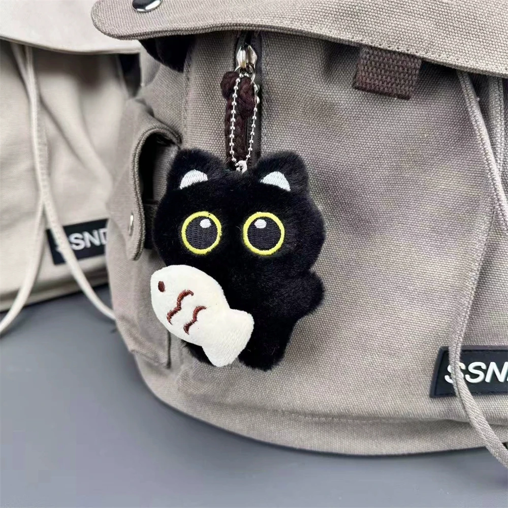 Porte-clés pendentif poupée chat noir en peluche pour femmes, breloque créative poisson chats voiture, bijoux cadeaux pour jeunes filles N956