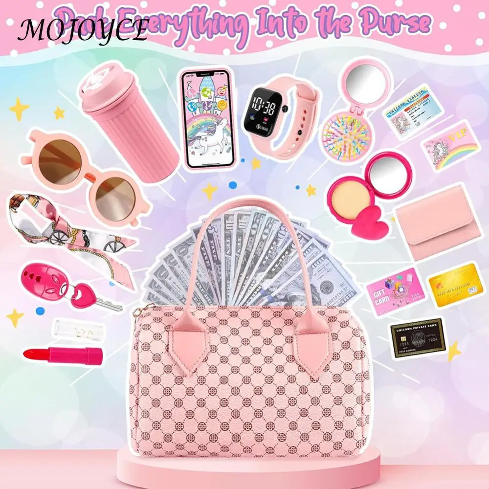 Ce porte-monnaie pour petites filles offre tout ce dont un tout-petit a besoin pour un jeu imaginatif en déplacement.Il comprend un sac à main, un portefeuille, une bouteille d'eau, un téléphone, une montre, des lunettes de soleil, une écharpe, des clés, une trousse de maquillage, de l'argent et des cartes, offrant un plaisir et une créativité sans fin.