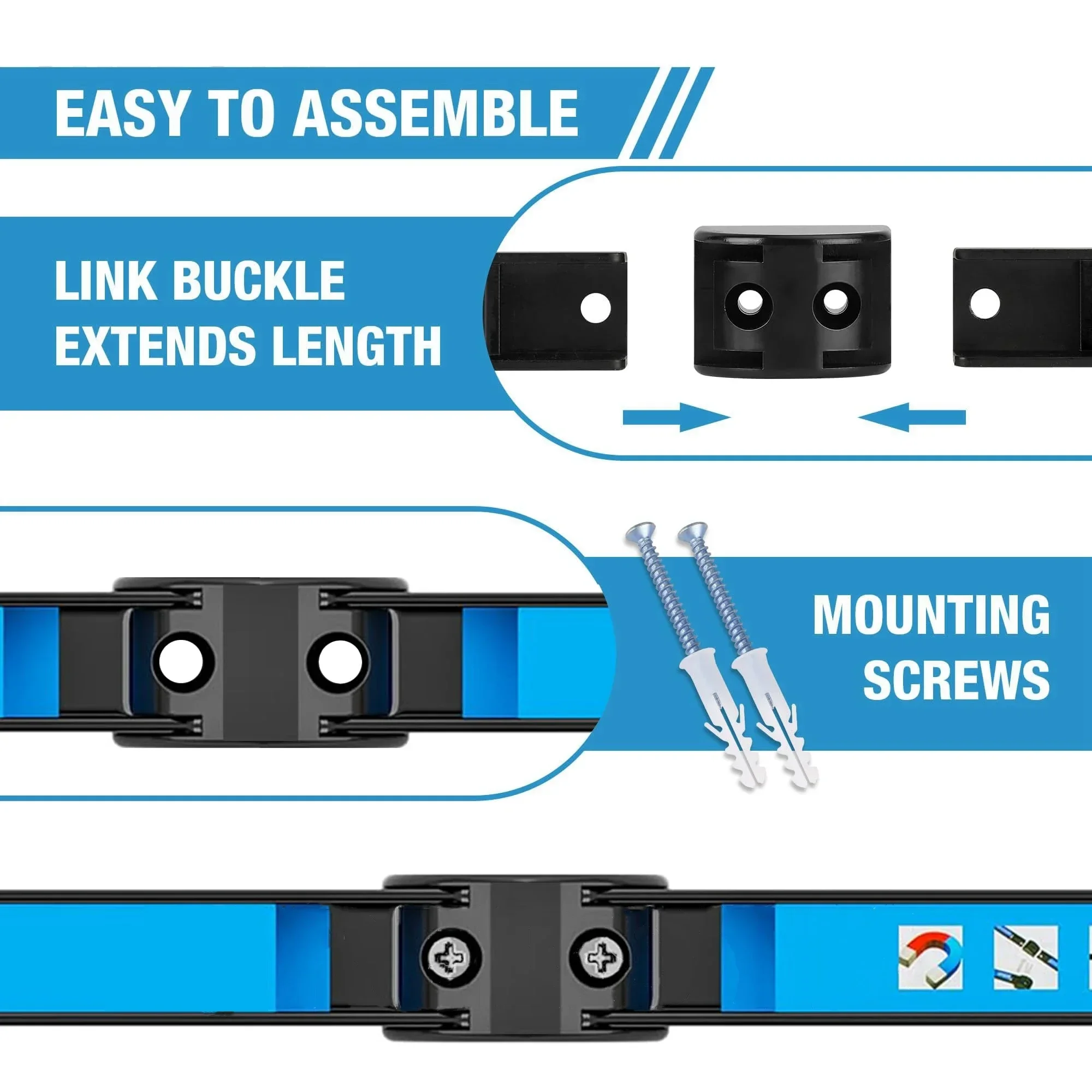 -Pour avoir une plus grande capacité de poids, vous pouvez installer plusieurs barres d'outils magnétiques à côté.