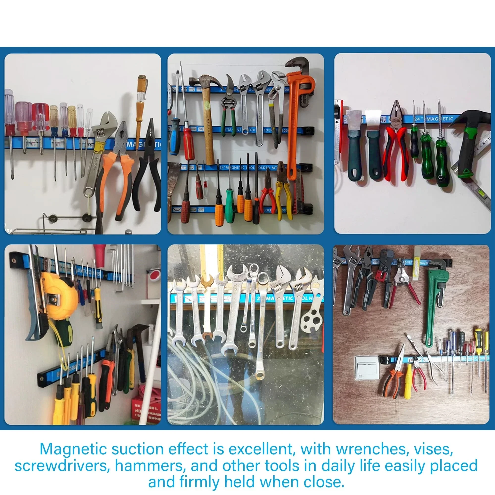 Porte-outil magnétique puissant, barre à outils magnétique robuste, outil de rangement mural, support de bande de barre, organisateur de Garage pour clé