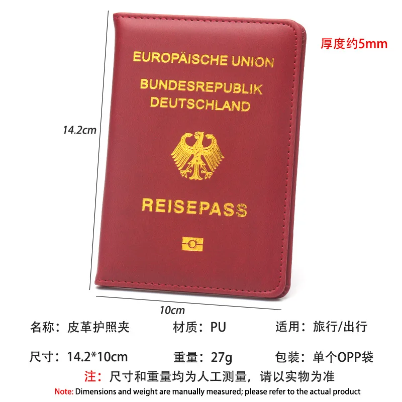 Porte-passeport allemand pour hommes et femmes, couverture de passeport en cuir PU, étui pour passeport Portable, porte-carte d'identité, porte-billet, accessoires de voyage