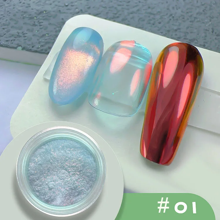 Poudre à ongles effet perle, 1 pot, miroir aurore chromé, sirène, poudre d'art pour ongles, arc-en-ciel AB, miroir magique, fournitures de poudre de coquille de perle