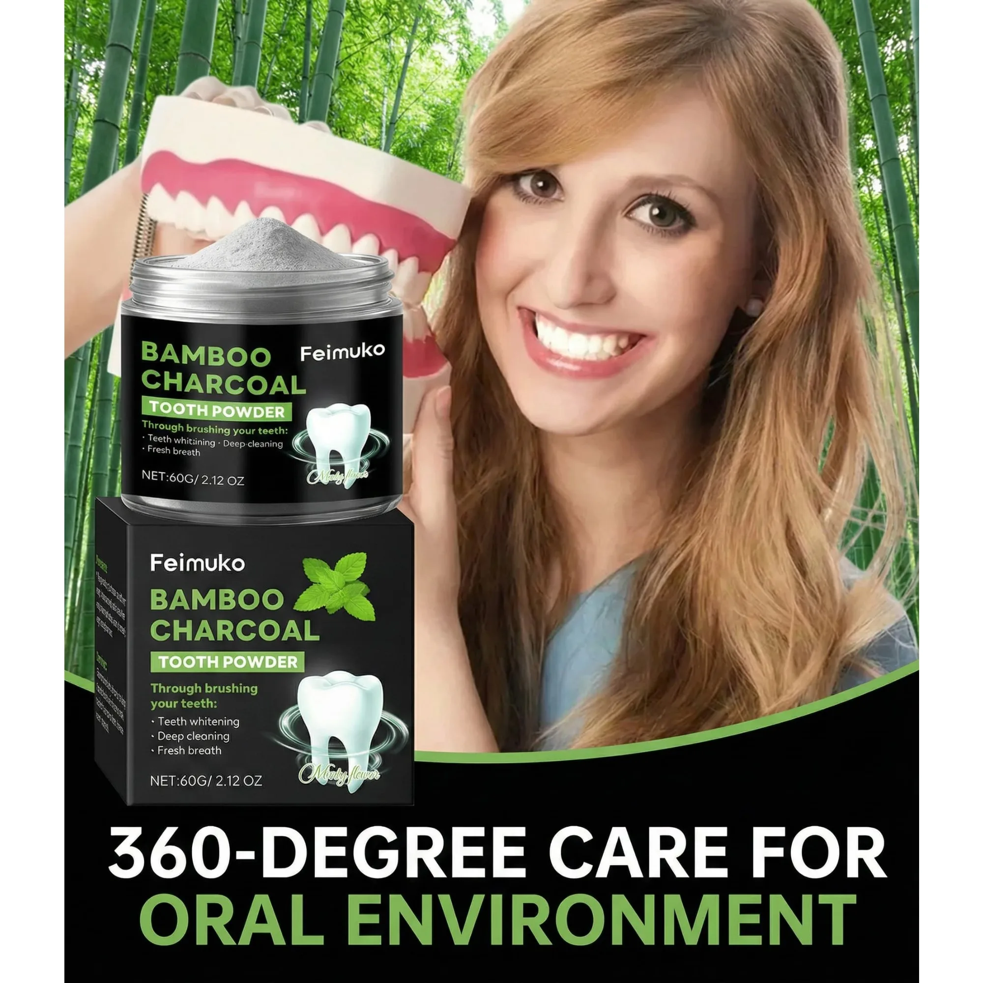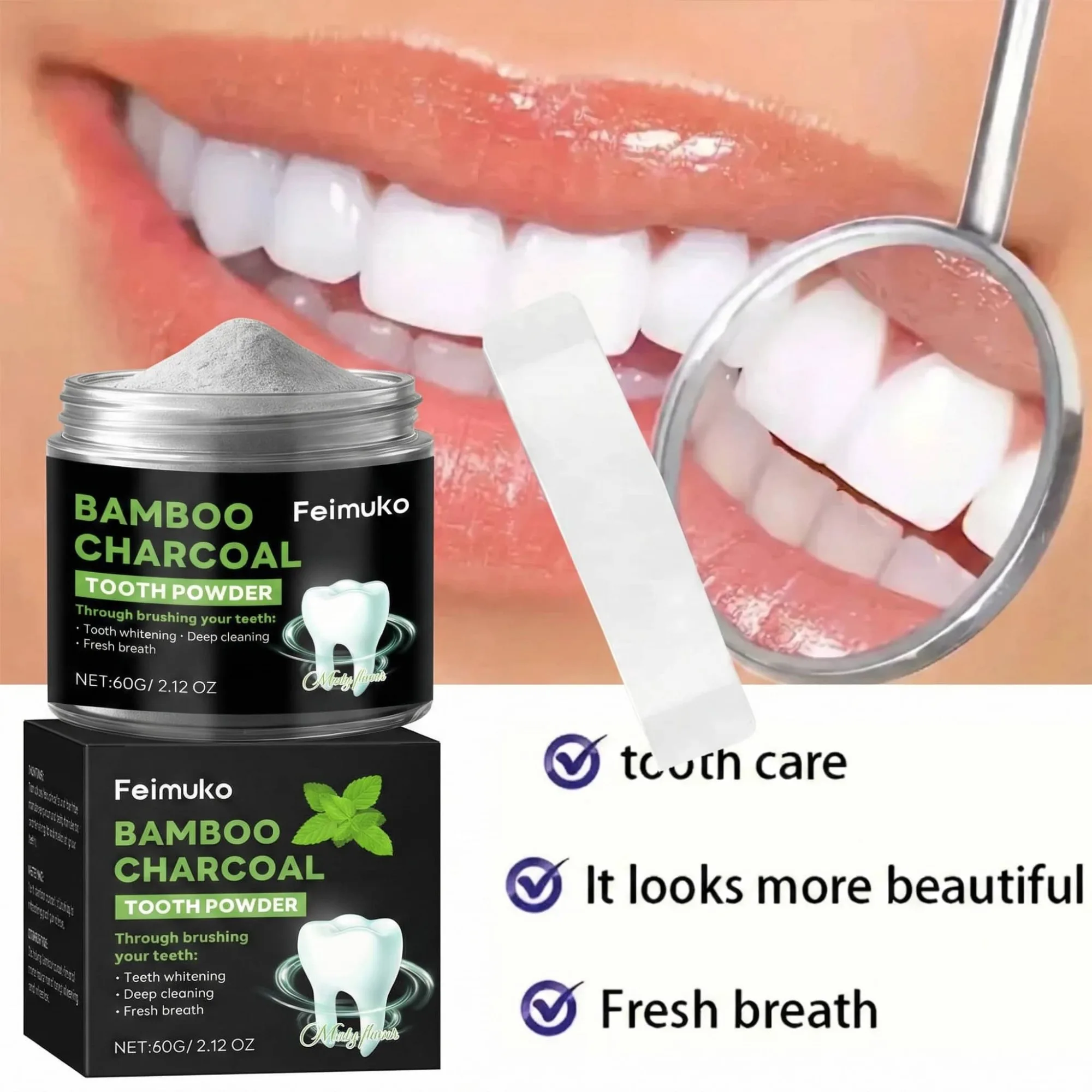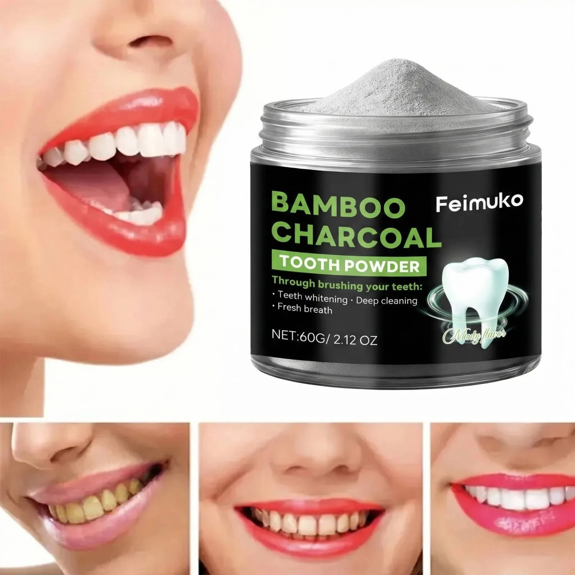 Poudre dentifrice à l'hydroxyapatite et au charbon actif | Blanchiment hivernal, réparation de l'émail, nettoyage en profondeur et haleine fraîche longue durée