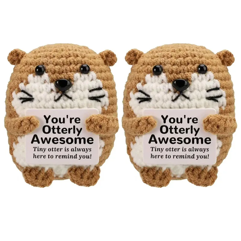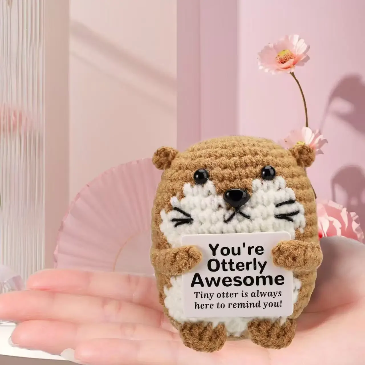 Poupée de loutre d'énergie Positive au Crochet, avec carte, décoration de salle de maison, Animal Adorable fait à la main, lontra tricotée, ornement de bureau, cadeaux