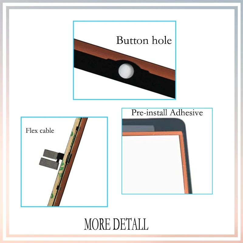 L'ID tactile du bouton Accueil n'est PAS disponible : propos de l'écran tactile avec le bouton Accueil pour iPad 8e, étant donné que le bouton Accueil d'origine doit correspondre au processeur d'origine de la carte mère (correspondance individuelle), l'empreinte digitale (ID tactile) ne fonctionnera pas une fois que vous échangez le bouton Accueil.