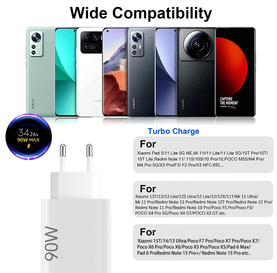Pour Xiaomi chargeur 90w Hyper Turbo chargeurs Cargador Rapido Tipo C pour Xiao Mi 15 T 14 Ultra 13t 12 Poco X6 X7 F8 adaptateur secteur