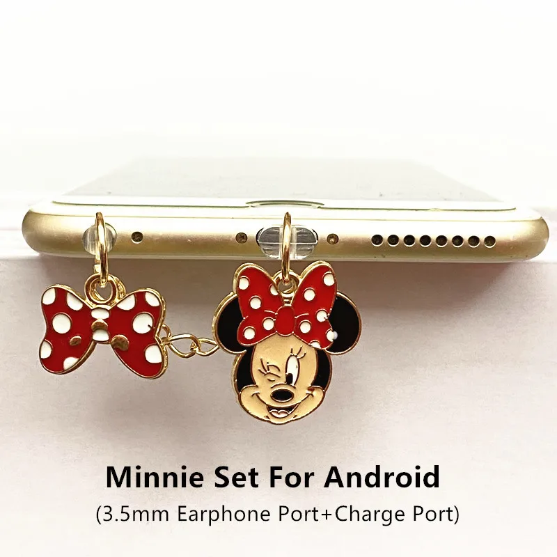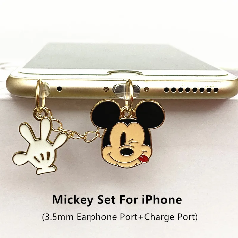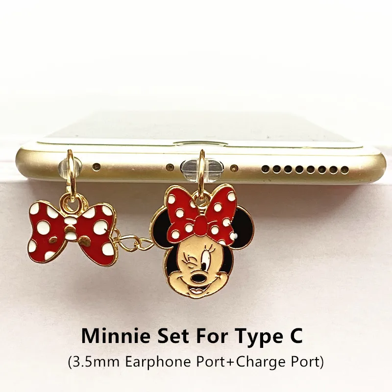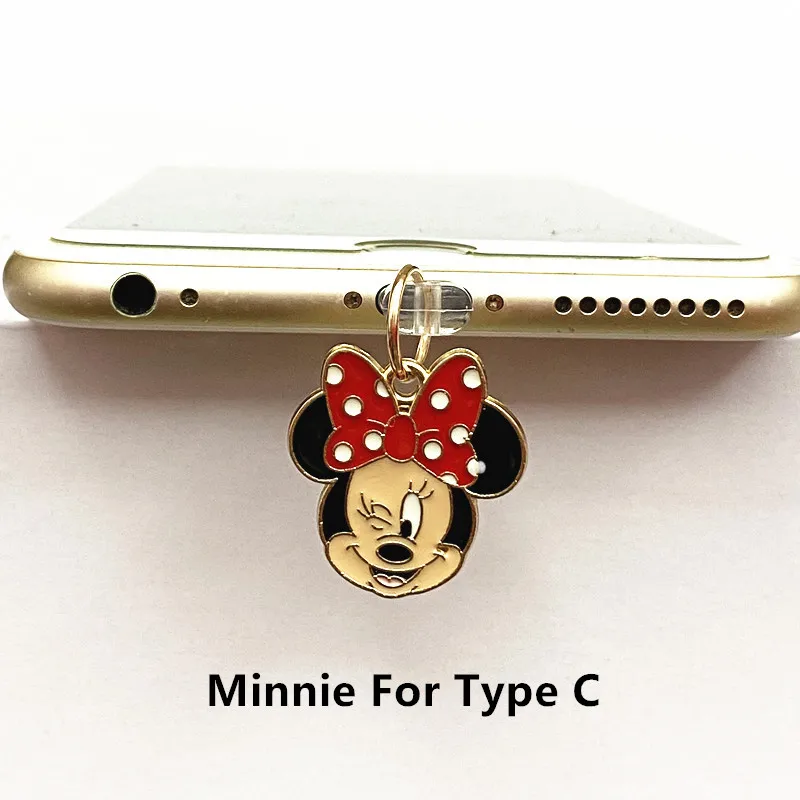 Prise Anti-poussière pour téléphone Disney Minnie Mickey, pour iPhone, Samsung, Huawei, Type C, Android, protecteurs de Port de chargement, bouchons anti-poussière en métal
